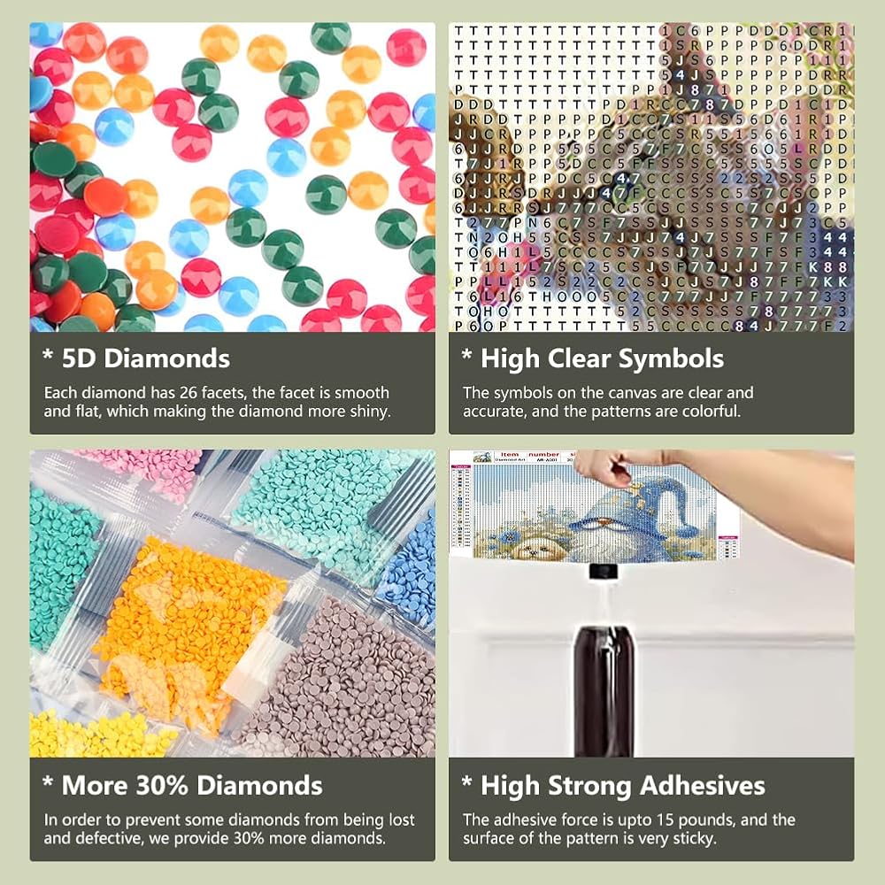 【Add More Fun to Your Life】: The 5D diamond painting kit is suitable for adults and teenagers. It is a good product for relaxing and decompressing. You can experience a sense of accomplishment, cultivate patience, and enhance self-confidence in this DIY process, allowing you to feel The joy of creation, easy to complete even if you are a beginner