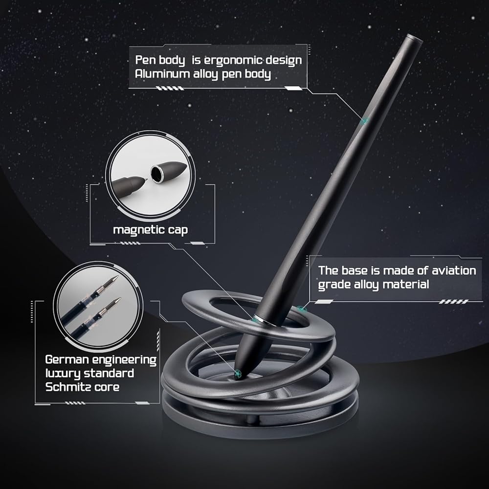 EXCELLENT QUALITY HOVER PEN: 1-The base is made of aviation grade alloy material. 2-Pen body is ergonomic Aluminum alloy design. 3-Magnetic pen cap.Never lose. 4-Luxury standard replaceable pen core