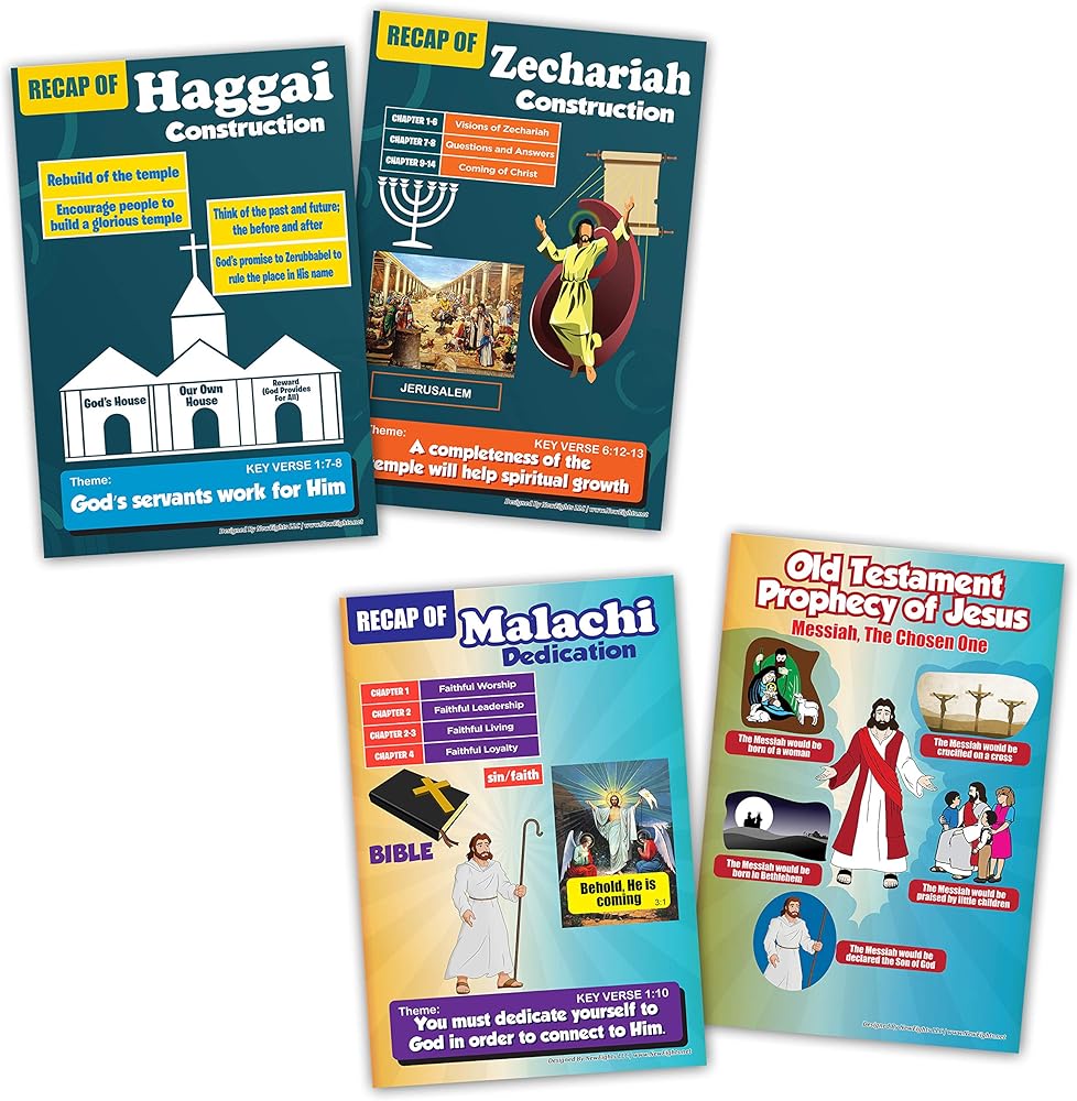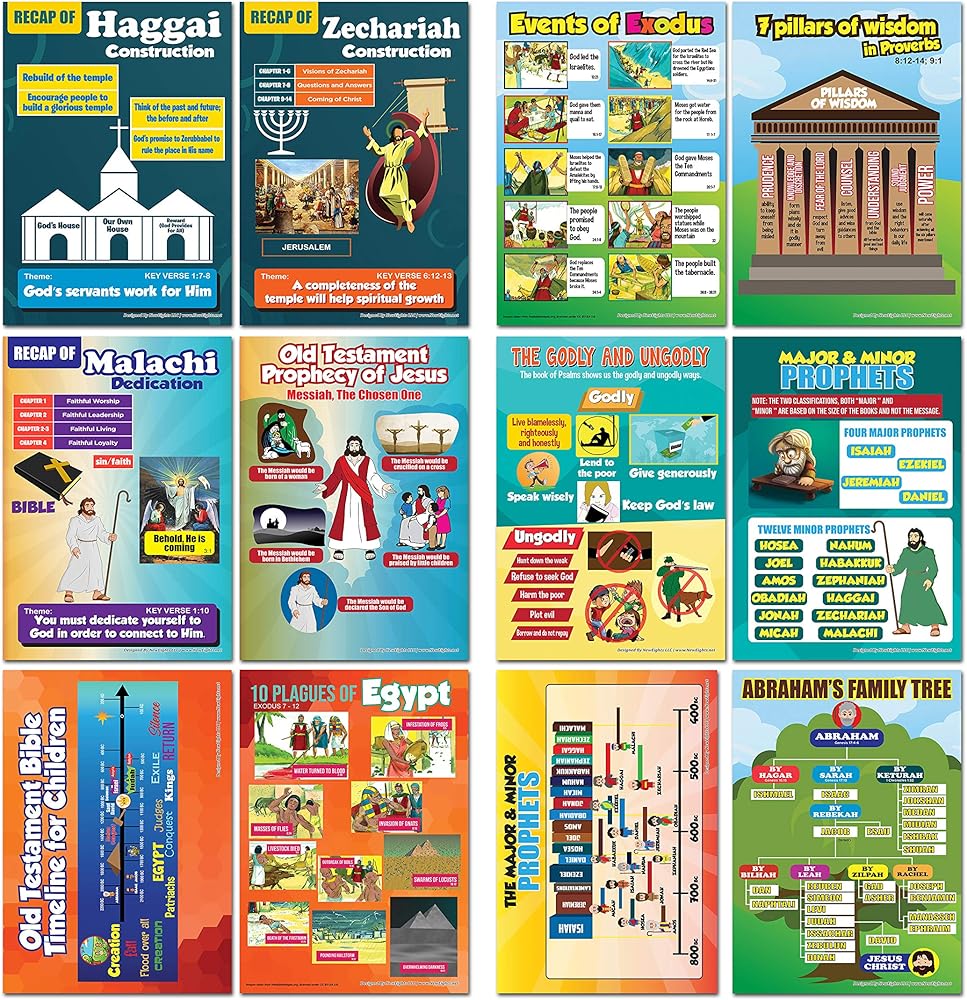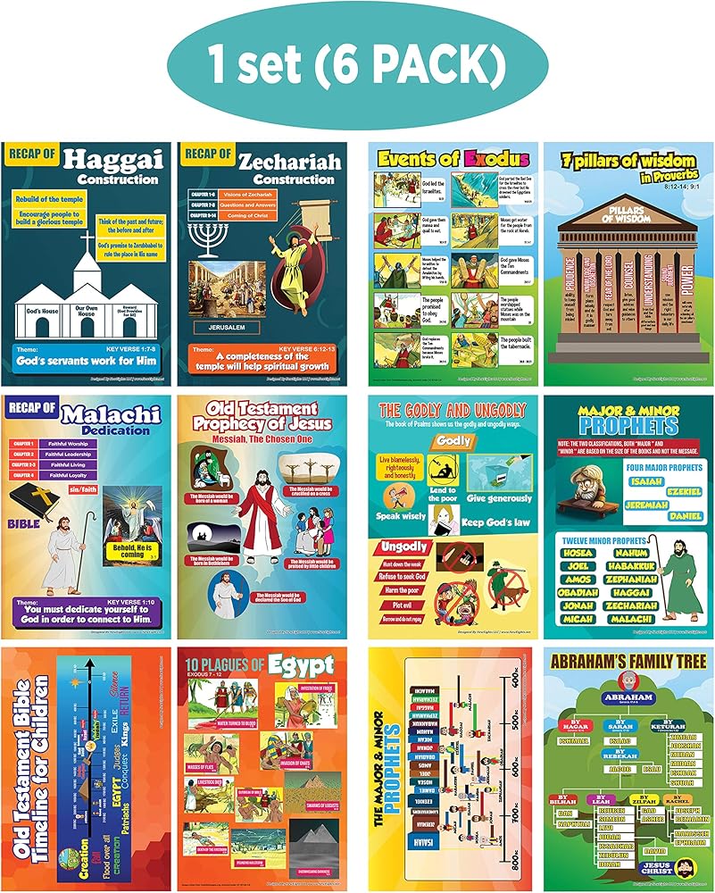 NewEights Educational Bible Knowledge on Old Testament Series 4 for Kids Learning Posters (6-Pack) – Class Schooling Early Educational Charts for Boys, Girls – Teaching Tool Set for Home Daycares