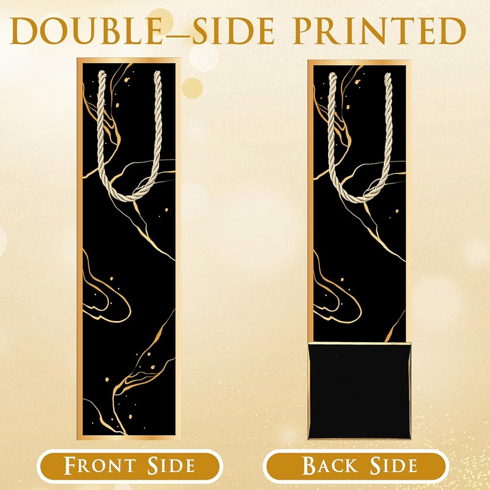 Classic Design: Wine gift bag adopt elegant and classic design with gold metallic foil stamped edges, enough to securely hold most standard sized wine bottles and enhancing the presentation of your gift.