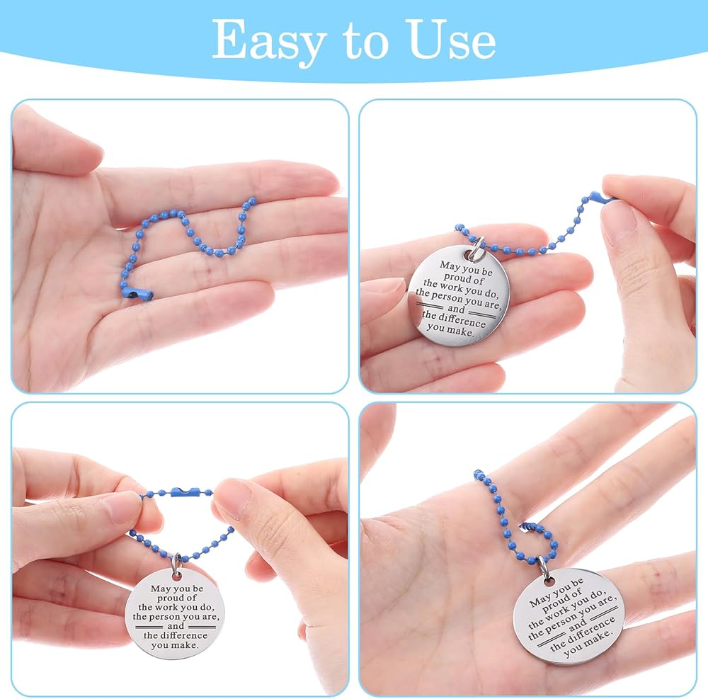 【Premium Metal Material】Our ball bead chains are made of high-quality stainless steel material, sturdy and durable, and will not easily break, well made with no rough edges. The chain and seal of the ball bead chain are very hard, easy to disassemble. The coating will not easily peel off, and will not irritate or leave color on the skin.