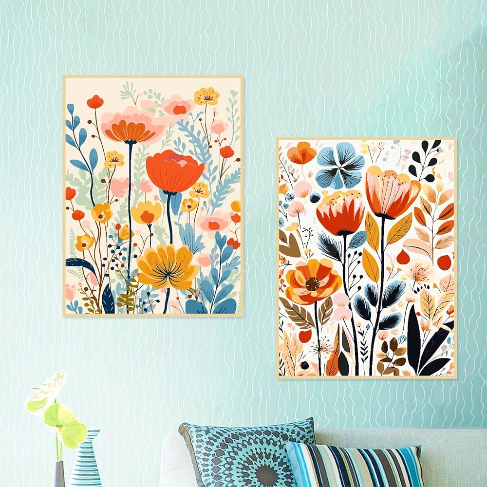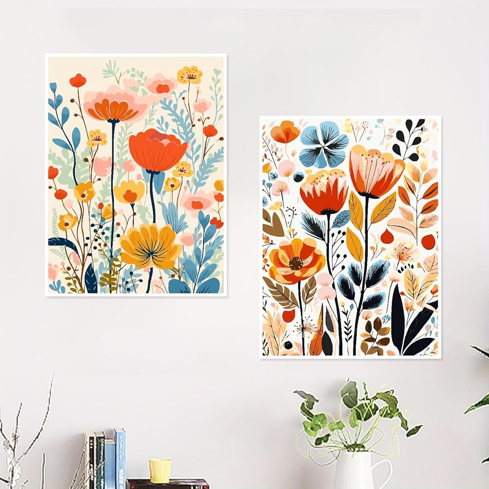 mjcakrn 2 Pack Paint by Numbers Kit for Adults Beginners, Acrylic Easy Flower Paint by Numbers on Canvas, 12" Wx16 L Rolled Canvas Adults’ Paint-by-Number Kits for Adults Wall Art in Colorful Box