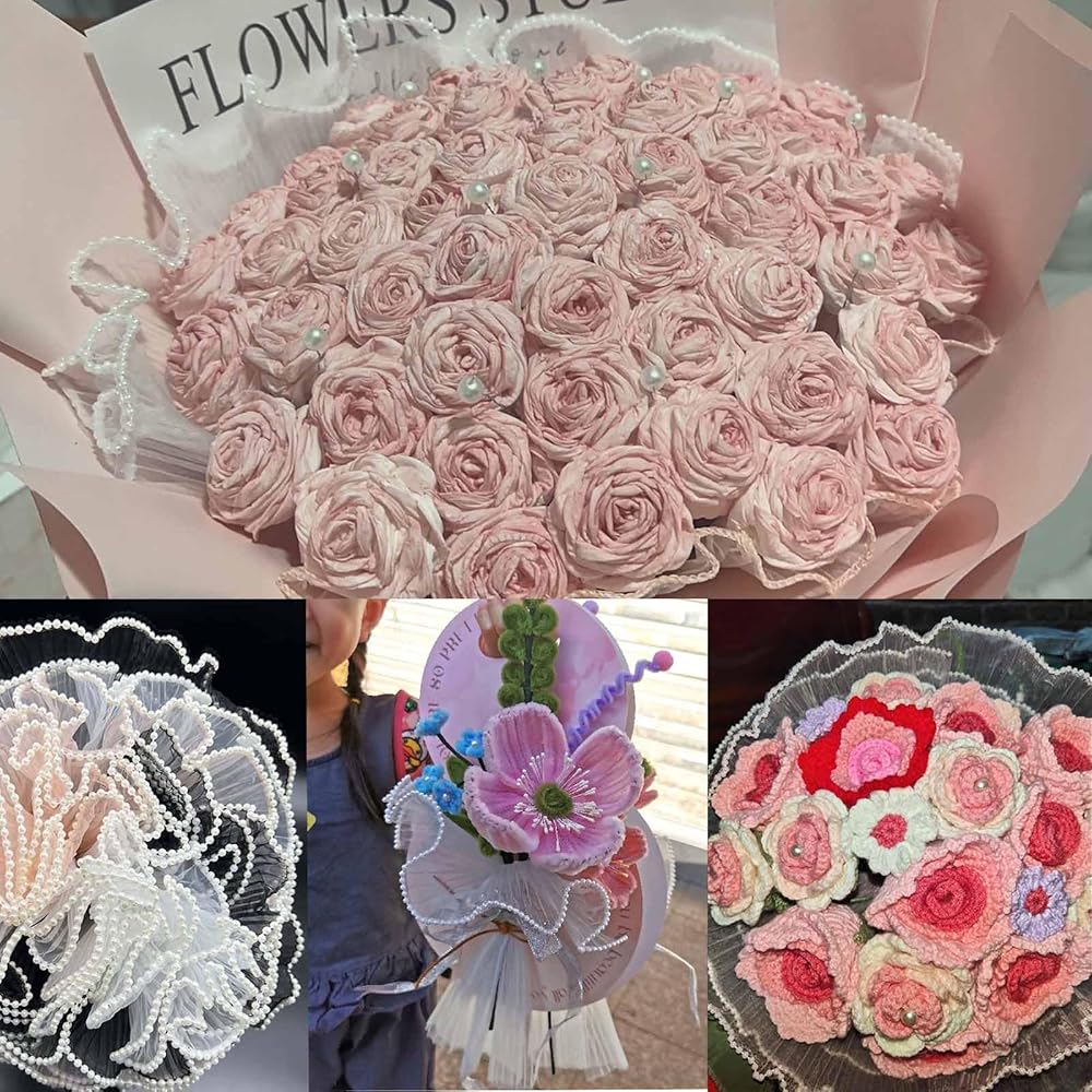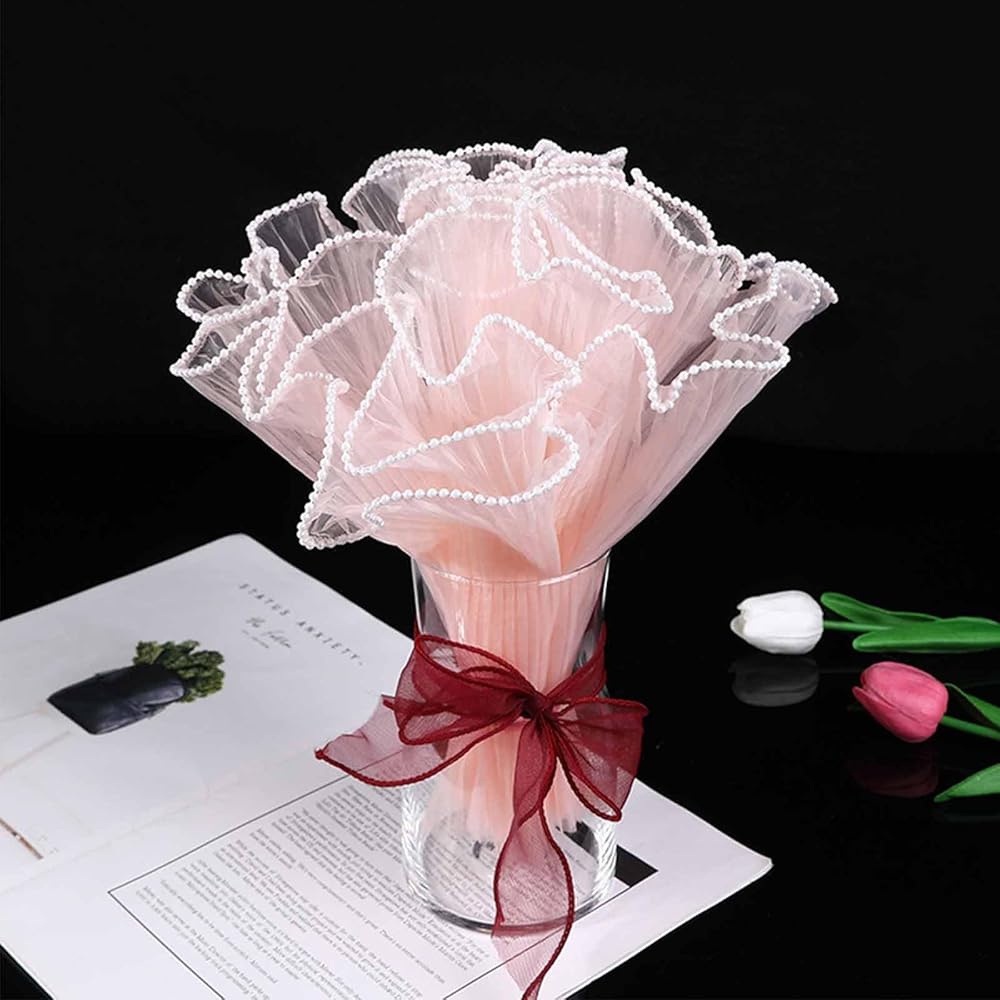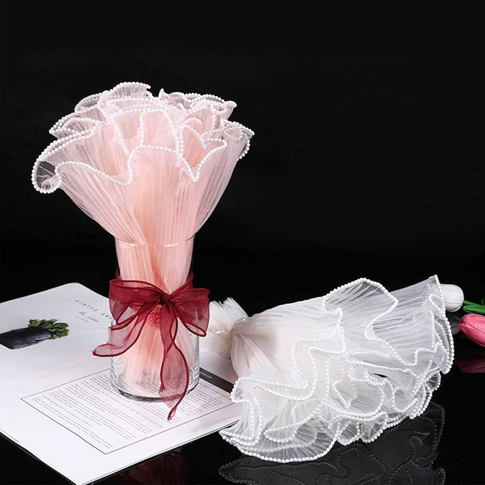 【Pearl/Wave Edge Detail】The package wrapping paper has double sided wave/Pearl decoration, which can make your flowers look more charming and attractive, and can also make your DIY crafts more beautiful.
