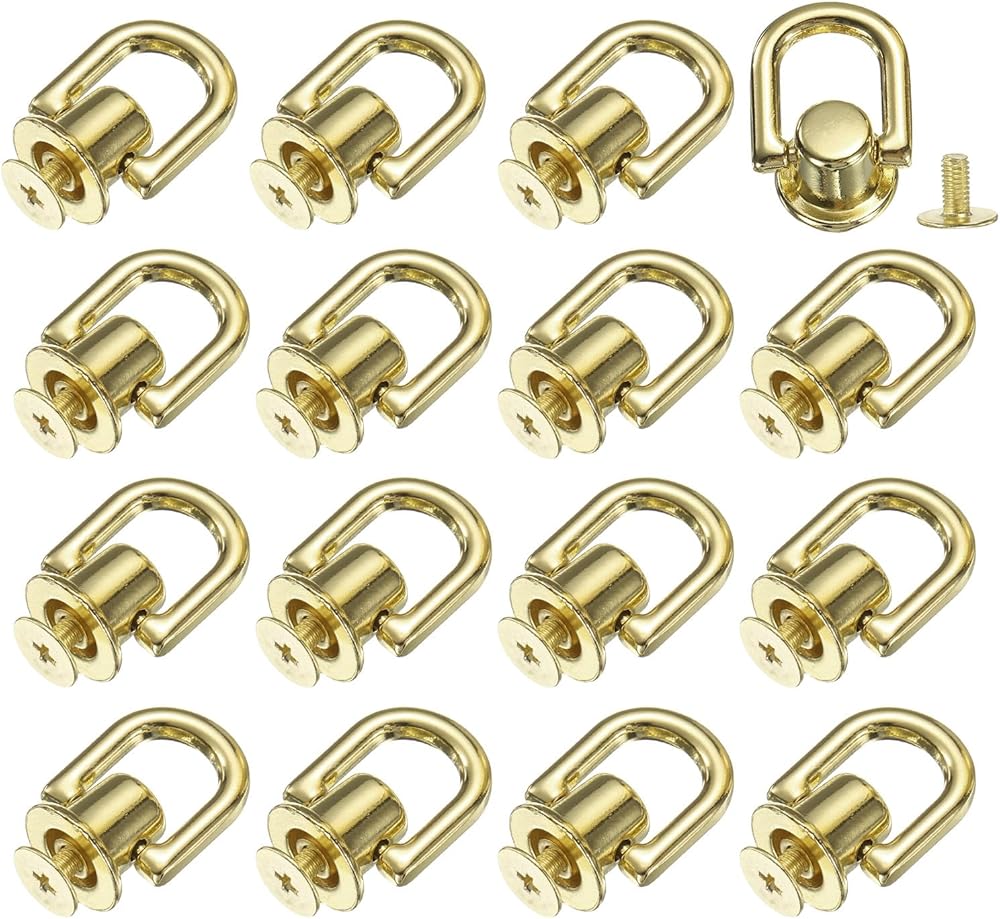 uxcell Metal Ball Studs Rivets D Ring, 16 Pcs Ball Post Head Buttons Studs Rivets with Screw for Purse Chain Connector DIY Art Leather Crafts (Dark Gold)