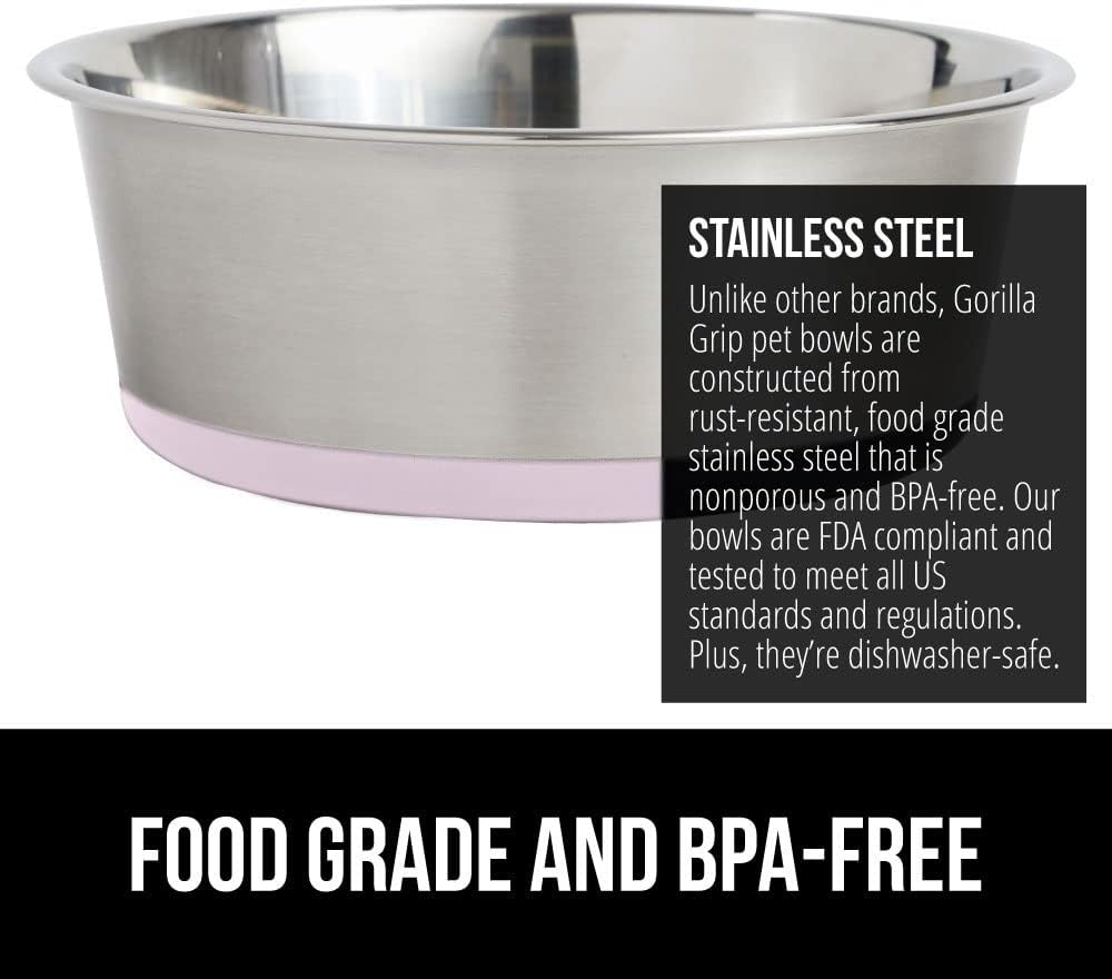 Food Grade and BPA Free: constructed from rust resistant, food grade stainless steel, these bowls are perfect for your pet; stainless steel is nonporous and longer lasting than plastic; bowls are FDA compliant and tested to comply with US regulations; dishwasher safe