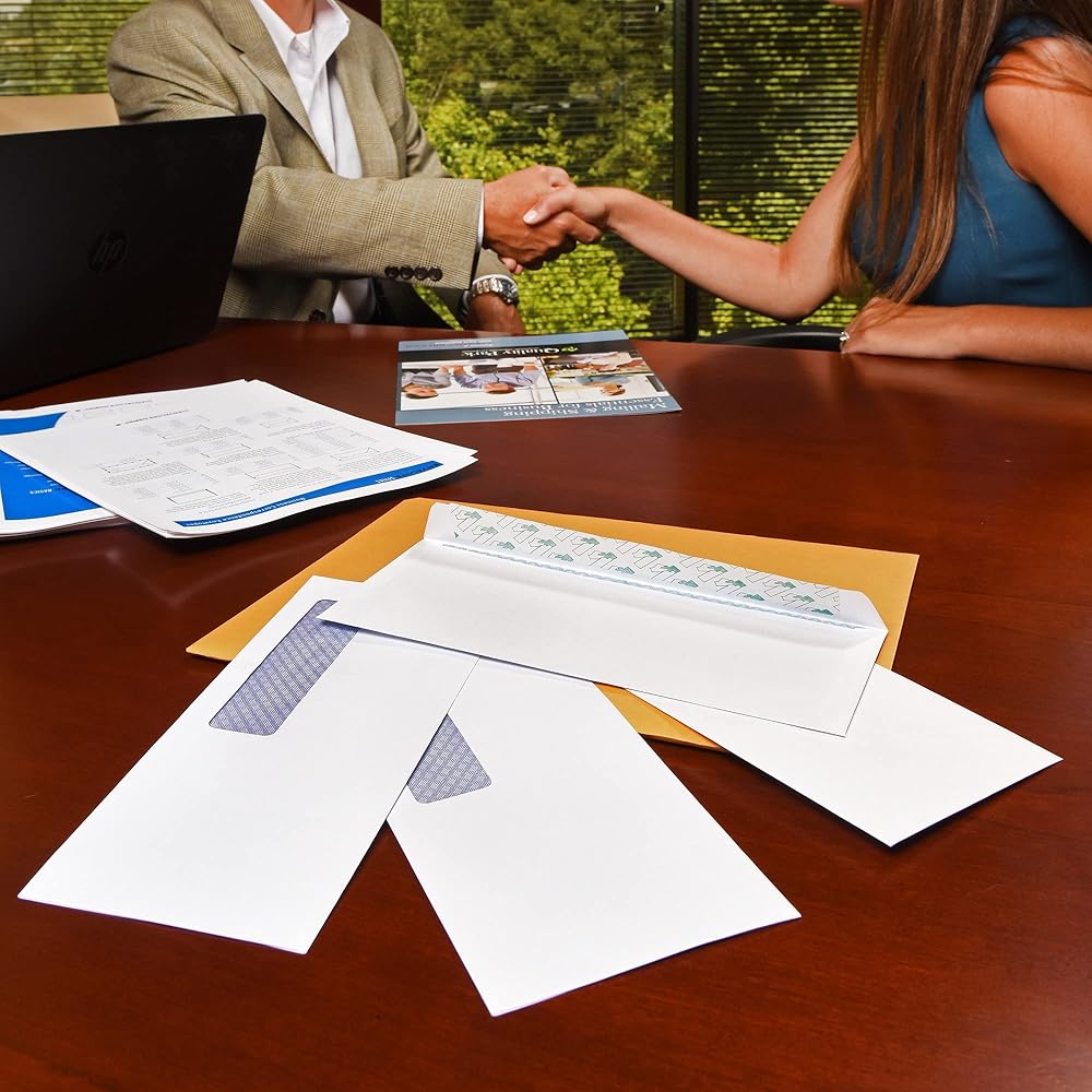 Our 500-ct Quality Park #10 double window envelopes (4-1/8 in x 9-1/2 in) fit select QuickBooks invoices & statements; our self sealing envelopes have Redi-Seal press-to-seal flaps & security tints