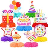 𝐏𝐑𝐄𝐌𝐈𝐔𝐌 𝐌𝐀𝐓𝐄𝐑𝐈𝐀𝐋 - happy birthday decorations kit is made of high-quality paper and can be firmly stood on the table. It is not easy to fall, fade and damage. It is easy to store and can be reused. 𝐃𝐎𝐔𝐁𝐋𝐄-𝐒𝐈𝐃𝐄 𝐏𝐑𝐈𝐍𝐓𝐈𝐍𝐆 - These centerpiece table decorations are double-side printed, putting it at any position of the table, we can easily create the birthday party atmosphere. 𝐄𝐀𝐒𝐘 𝐓𝐎 𝐔𝐒𝐄 - First, peel off the stickers from the honeycomb, and paste it. It only takes a few minutes to complete the installation. 𝐏𝐀𝐂𝐊𝐀𝐆𝐄 𝐋𝐈𝐒𝐓 - You will receive 9 pcs colorful birthday table decoration for party with different patterns. Perfect birthday decorations for girls, boys, men, women. 𝐁𝐈𝐑𝐓𝐇𝐃𝐀𝐘 𝐓𝐀𝐁𝐋𝐄 𝐃𝐄𝐂𝐎𝐑 - You can put them on the dessert table, buffet table, or gift table, can be used indoors or outdoors, not suitable for outdoor use when it rains.