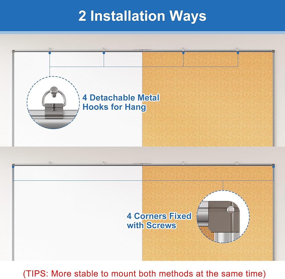 Flexible Hanging for Any Space: Mount horizontally for office teaching or vertically for kids' activities and homework. The lightweight aluminum frame supports secure installation in classrooms, cubicles, dorms, or home offices
