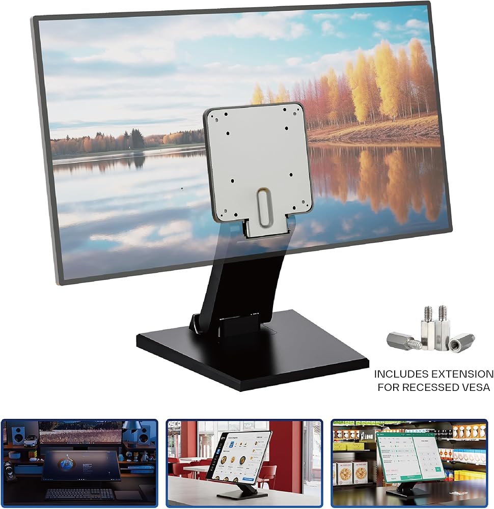 VESA Compatible (75x75mm & 100x100mm) – Supports standard flat VESA mounts for monitors, synths, or POS displays. (Not compatible with recessed VESA patterns.)