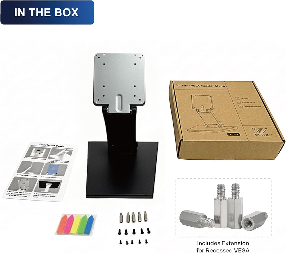 Upgraded Adjustable Folding VESA Stand for 10–24" Screens – Includes Extension for Recessed VESA, 75x75/100x100mm Compatible, Ideal for Tablets, DJ Gear, POS, Secondary Monitors