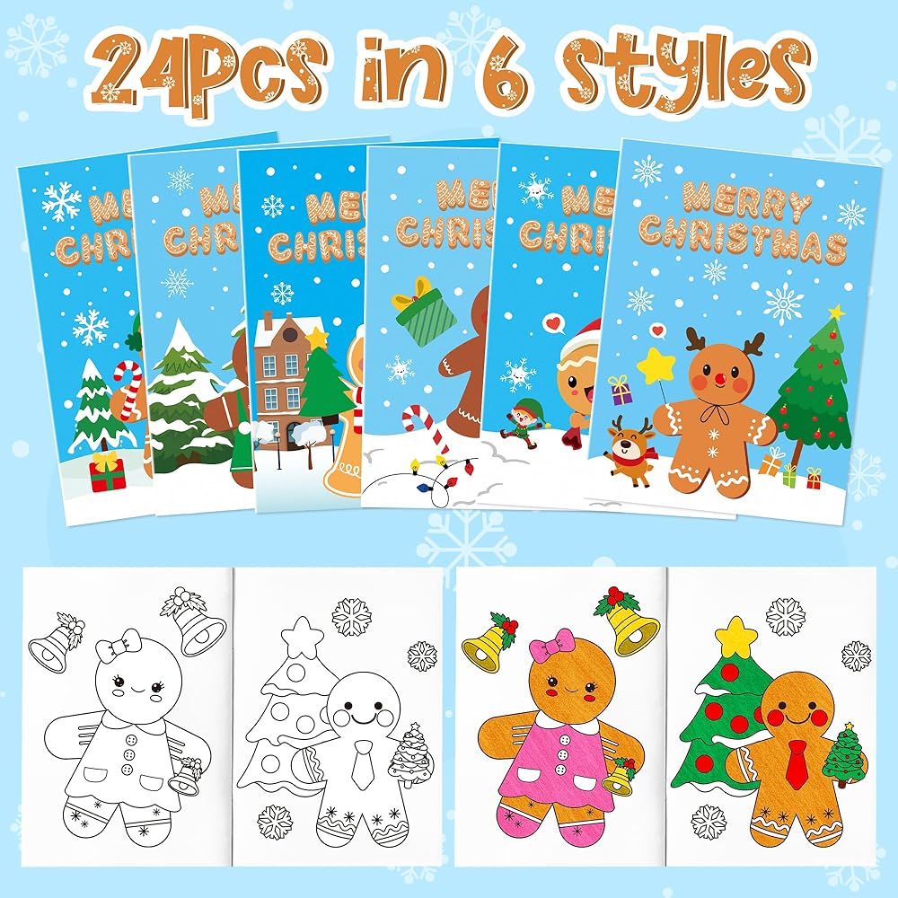 Unbess 24Pcs Merry Christmas Gingerbread Man Coloring Book - Xmas Color-in Pages Booklet Art Drawing Party Favors Holiday Gifts Home School Classroom Activity Supplies for Kids