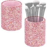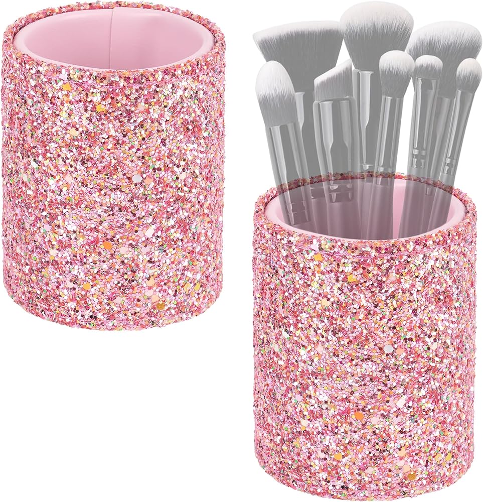- 2 x Pink glitter makeup brush holders (Makeup brush not included)