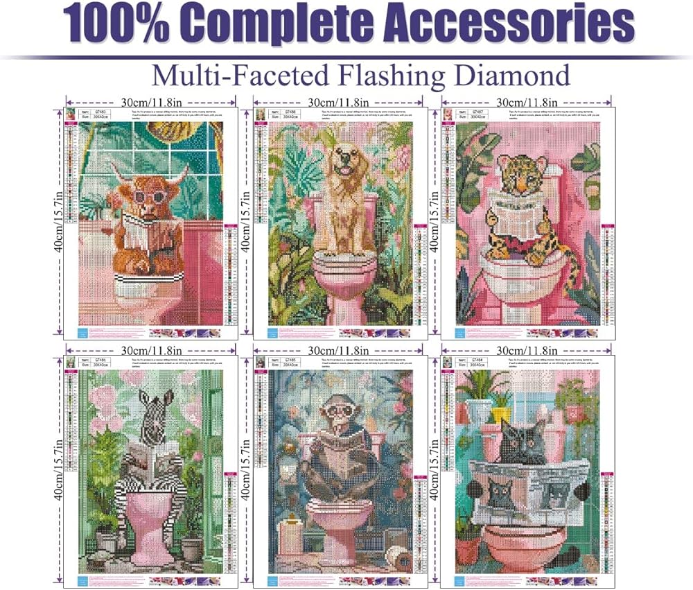 Diamond Painting Kits for Beginners: Each animal diamond painting comes with all tools in need.1*HD painting canvas, 1*diamond pen, 1*cube diamond tray, 1*red glue clay, 1*pen grip, 10*plastic bags for putting diamonds, and enough colorful round diamonds. each kit we'll provide 20% diamond more than need