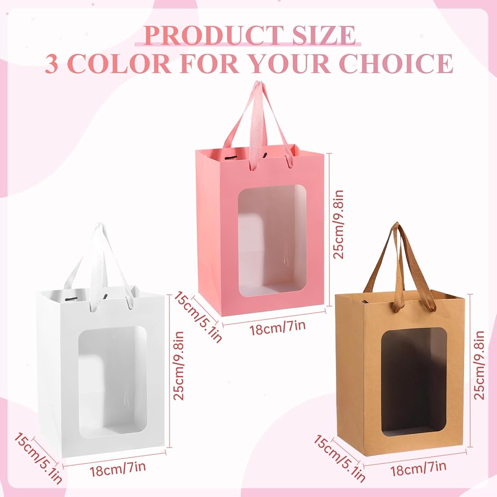Meet Your Daily Needs: you will receive 12 pieces kraft gift bag with clear windows; Each goodie bags measures approx. 25x18x13cm/ 10x7x5inches; total 4 colors: pink, brown, black, white. Wider cloth handles are stronger and sturdier than plain paper handles, making you more comfortable to handle under heavy loads; Sufficient quantity is enough to share with family and friends