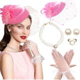 Complete Set: You will receive a complete Ladies Tea Party Fascinators Hats Set including a mesh lace hat, pearl earrings, pearl necklace, pearl ring and mesh polka dot gloves. Perfect for the ultimate tea party look!