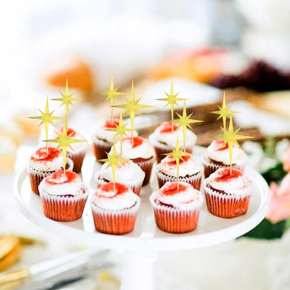 Keaziu 30PCS Star Cupcake Toppers Little Star Twinkle Star Cupcake Picks Engagement Bridal Baby Shower Wedding Birthday Party Cake Decorations Supplies Sliver