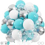 - 100 Premium Balloons in 9 Styles: Includes 12inch metallic chrome blue balloons, navy blue balloons, royal blue balloons, pastel blue balloons, macaron blue balloons, baby blue blue balloons, pearl blue balloons, pearl light blue balloons, and confetti blue balloons + 2 ribbon rolls for dazzling displays.