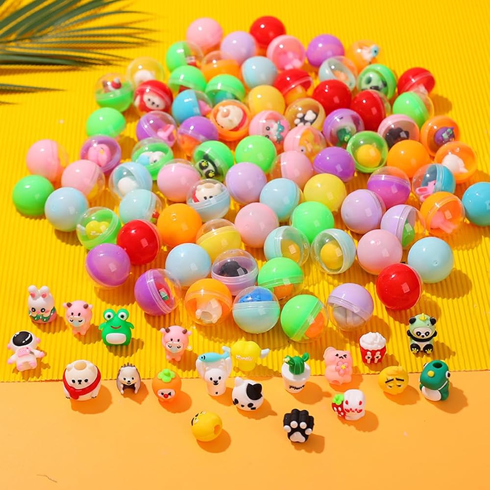 50Pcs Capsule Toys: Arcimatto random assortment capsule toys for kids, which contains mini animals and foods fruits in a variety of different colors and shapes. Enough quantity for sharing and collecting