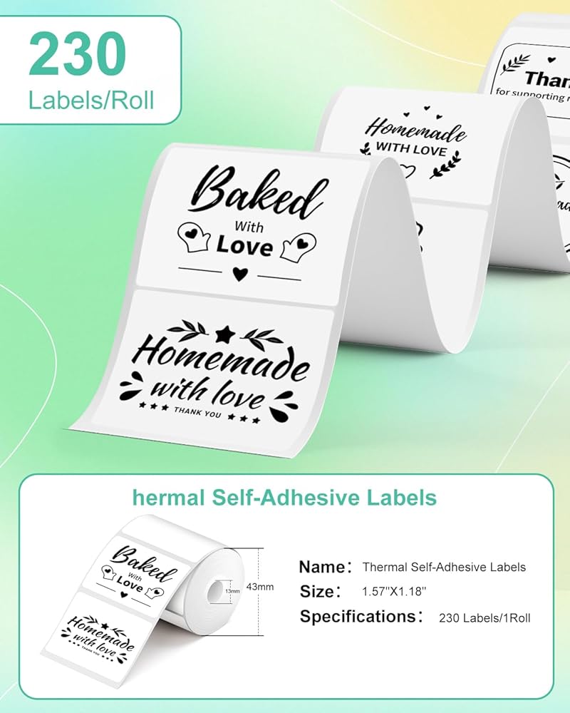 Compatibility: This thermal sticker label paper is suitable for Ponek label maker M100 and Compatible with other series of M120/M110/M220/M221/M200/M260/M250/M150/M160/M108 label maker machines