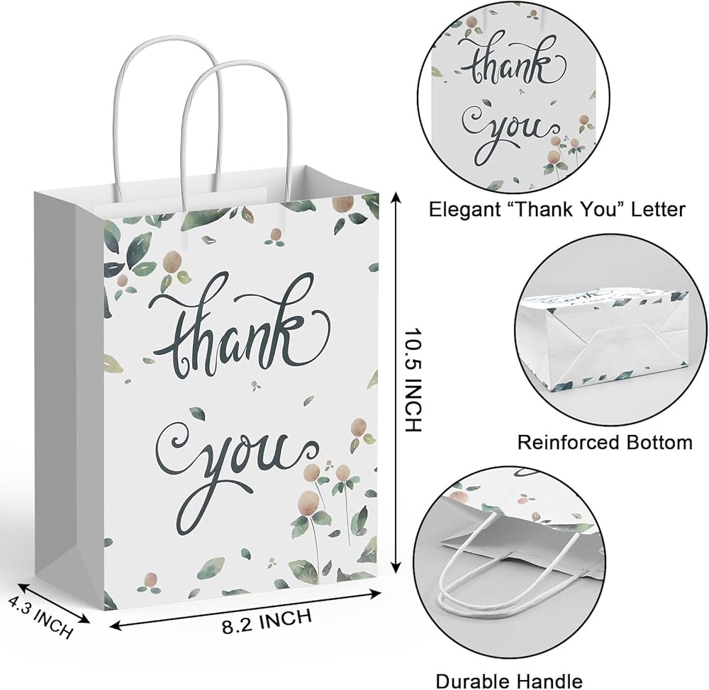 Elegant Design: Beautifully designed thank you gift bags with a delicate floral pattern and calligraphic 'thank you' text.