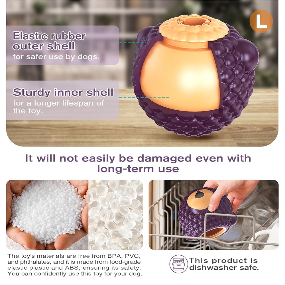 [Safe Materials & Double-Shell Design] The toy features a dual-shell design with an elastic outer plastic shell and a durable inner hard shell for enhanced safety and durability. Even with long-term use, it is not easily susceptible to damage. The toy's materials are free from BPA, PVC, and phthalates. It's made from food-grade elastic plastic and ABS, which are very safe, you can give it to your dog without concern.