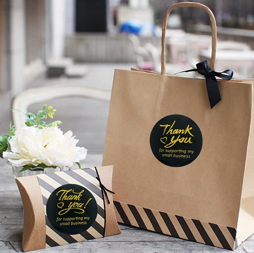 N’icePackaging – 500 Qty – 1.5 inch Thank You for Supporting My Small Business (Gold Text) w/Heart Black Stickers – Self-Adhesive – for Decoration/Sales/Branding/Envelopes