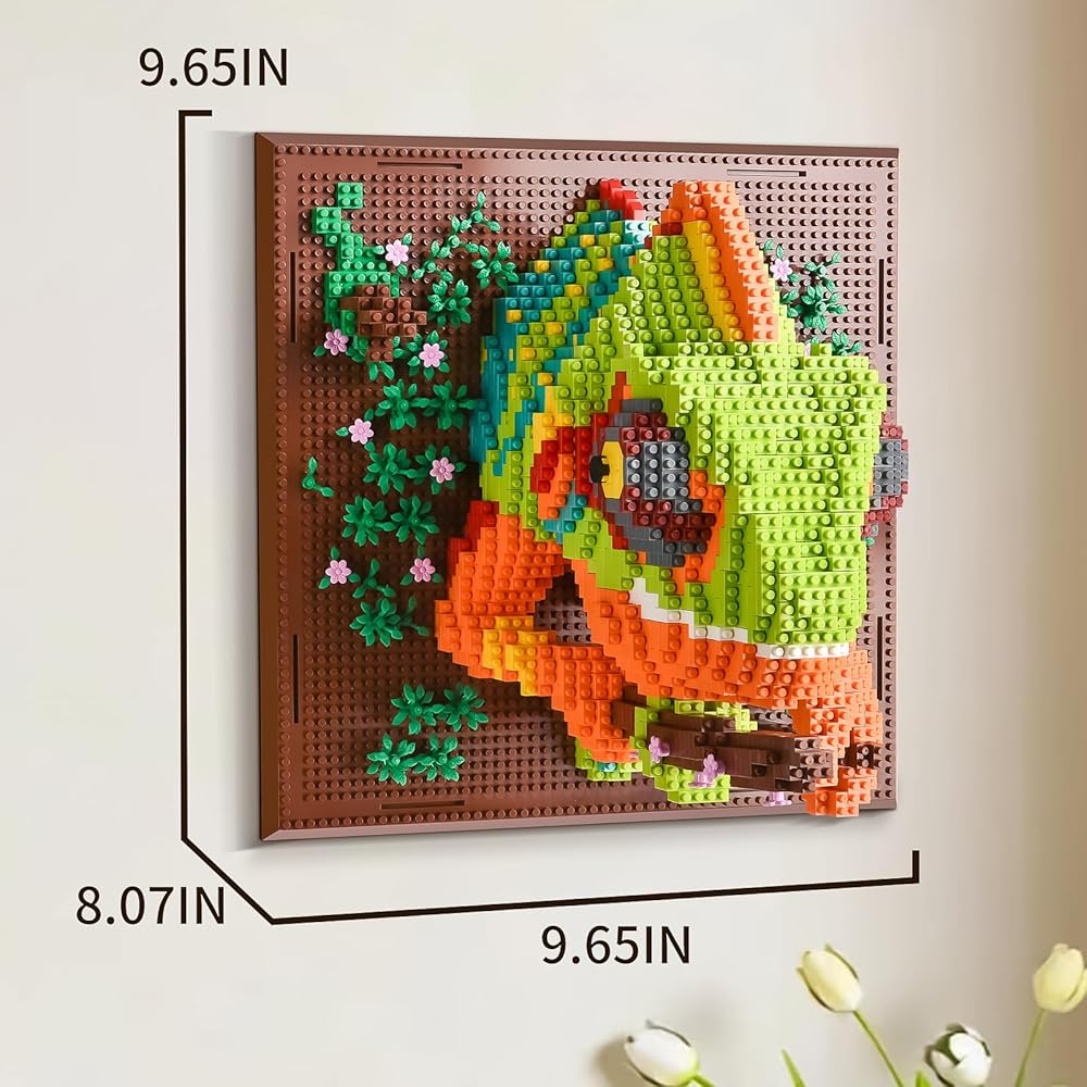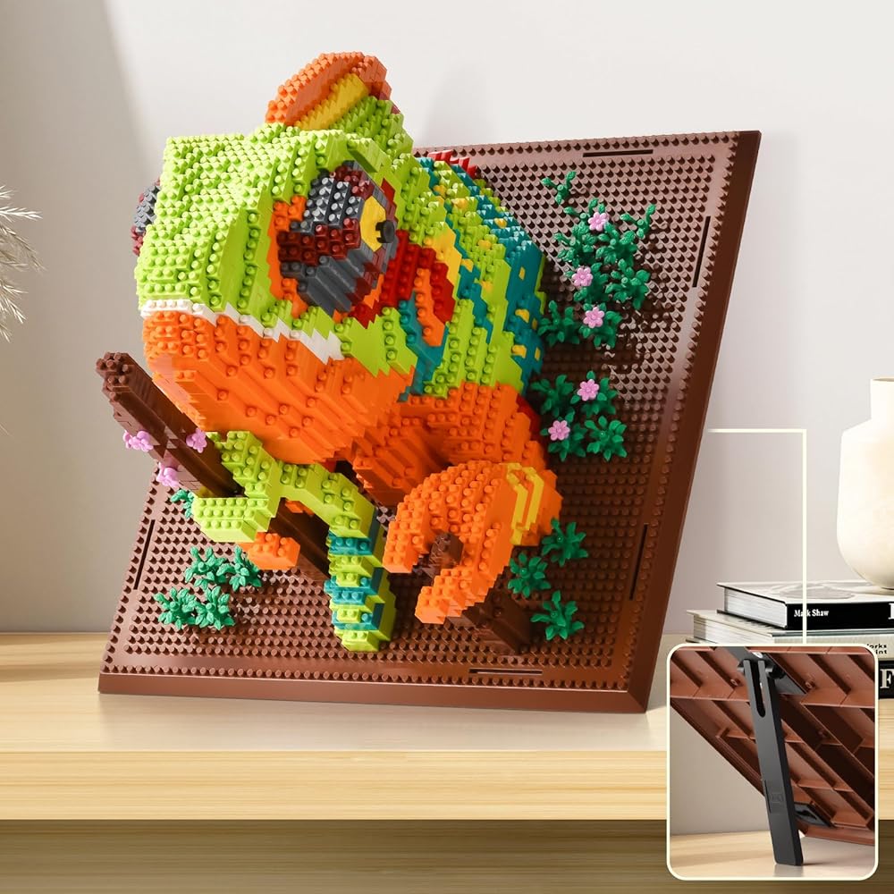 Vivid 3D Wall Art Design: Crafted with lifelike details inspired by nature, this chameleon building set combines vibrant colors, dynamic plant elements, and layered 3D textures.Watch your creation transform into a stunning rainforest-inspired wall art or tabletop display, capturing the chameleon's color-shifting magic.
