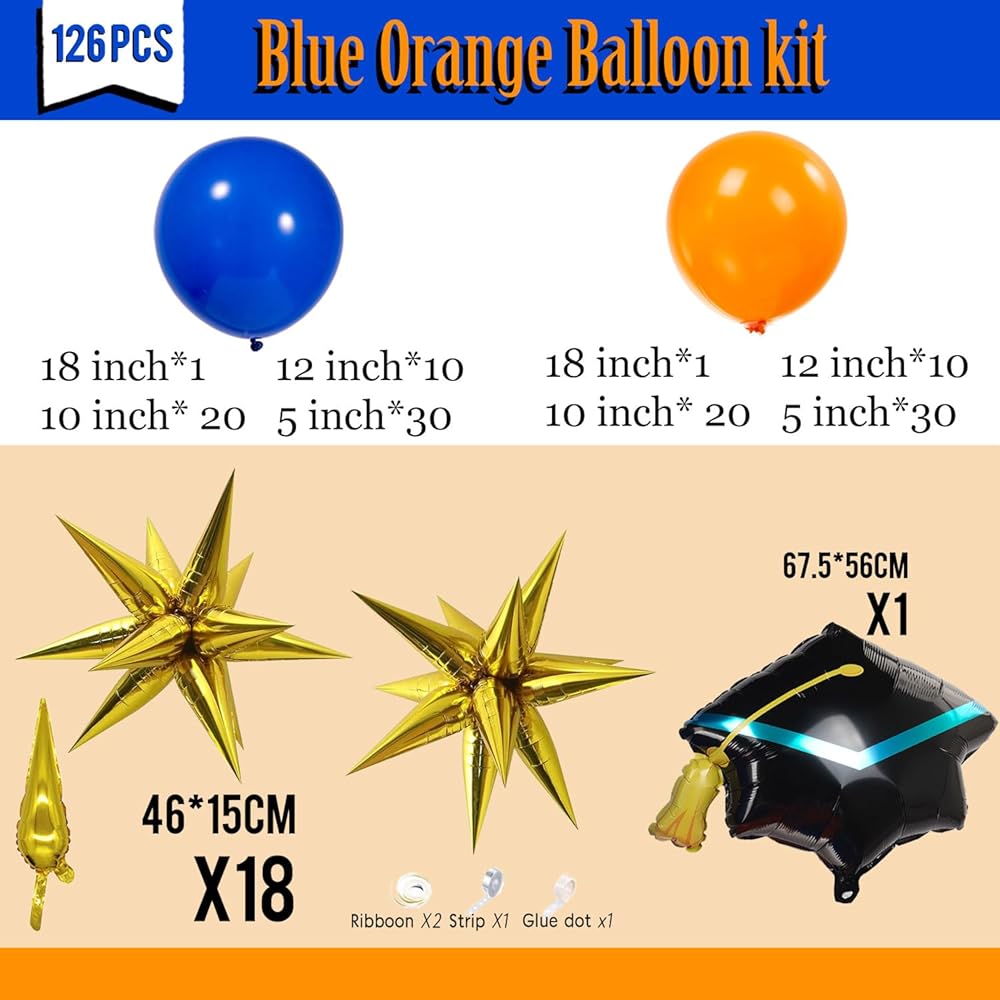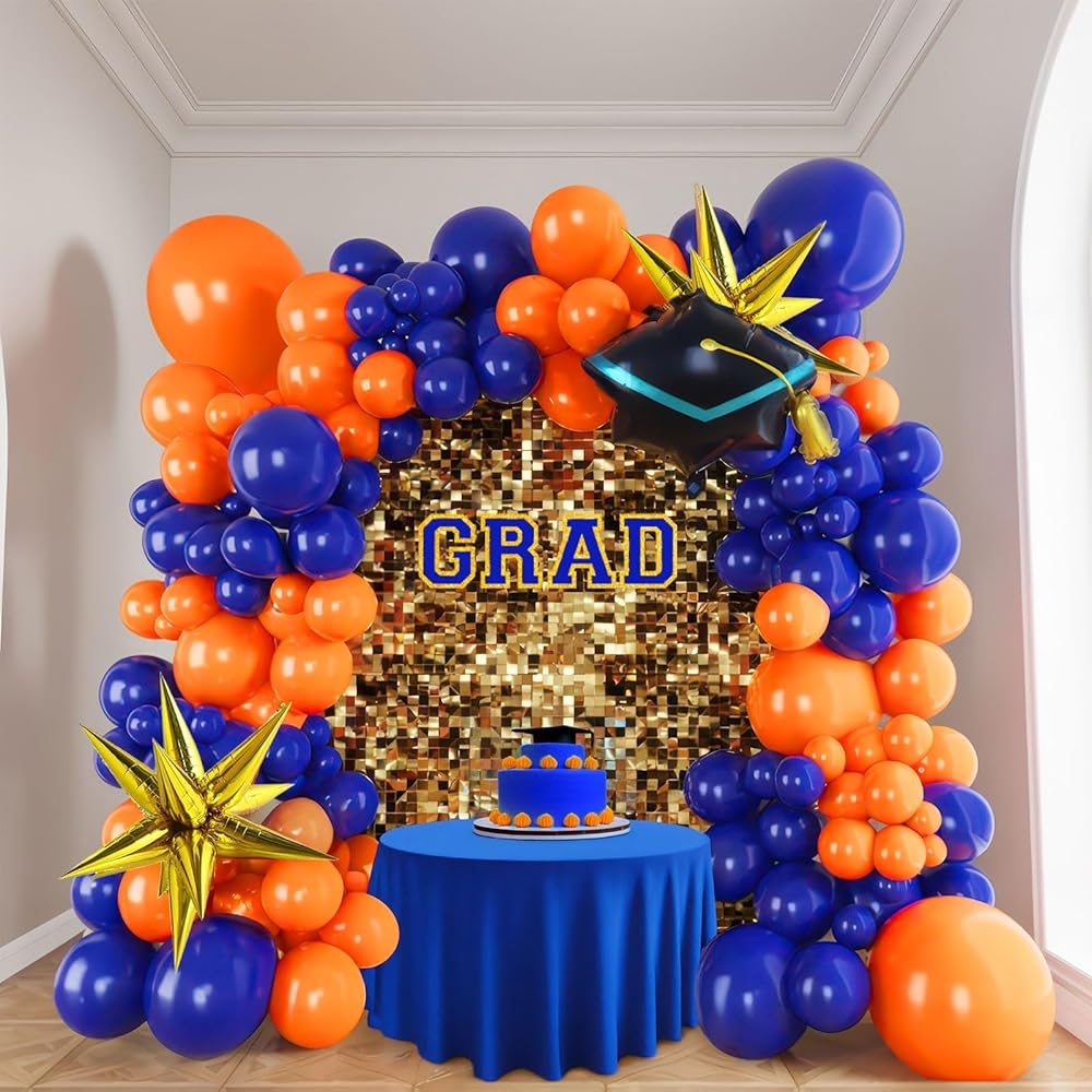 Orange and blue Graduation Balloon Garland Arch Kit with foil star crown graduation cap balloons for School students graduate class of 2025 Prom Party Decorations (Royal Blue Orange)