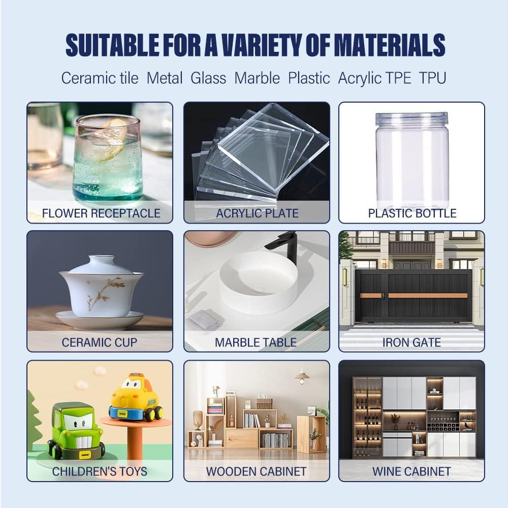 【Wide application】Suitable for bonding Ceramic, Glass, Pottery, Porcelain, Mug, Tile, Metal, Leather, Plastic, Rubber,etc. Can be used for bonding ceramic, mirror, window, pottery, acrylic, DIY. The ceramic glue is transparent and colorless, very durable. It is very suitable for making bonding crafts, diy, daily object repairing, etc. Glue is suitable for all kinds of uneven, rough and vertical surfaces.