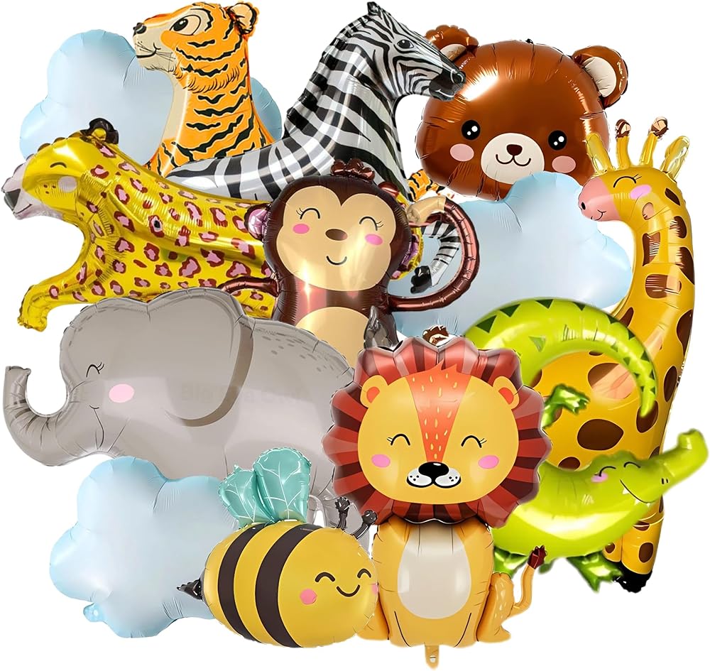 Packaged Included: 4 pcs foil balloons in the shape of tiger, size of leopard balloons is around 39.5 inch long and 25.6 inch tall. Double side printed more thicken than others balloons! These tiger animal shape balloons can be filled with helium or air. Perfect for safari birthday decorations girl, jungle animal baby shower, safari baby shower and other jungle themed party or tiger theme party jungle animal balloons party animal balloons animal balloons jungle safari jungle safari balloons tiger balloons for party safari jungle animal balloons tiger striped balloons tiger foil balloon
