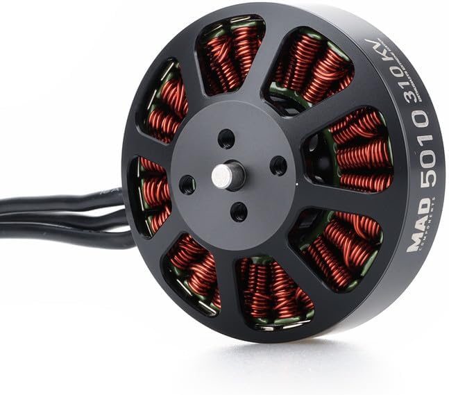 MAD 5010 EEE brushless motor is the single rotor load of 800-2000g, with 14-24 "carbon propeller. Support Li-ion 6S-12S. The largest thrust of single rotor is up to 5000g.the weight of motor is 158g.