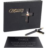 ❤️【MEMORIAL REMEMBRANCE】This funeral memorial book is a charming way to capture memories and heartwarming messages from friends and family. Packaged in a beautiful gift box, this funeral registry serves as a memorable keepsake for all the thoughtful sentiments, prayers, and other remembrances. These keepsake sign book sets include a funeral guest book with "In Loving Memory" embossed in gold foil on the cover, designer pens, a pen holder,100 commemorative message cards and a black table card.