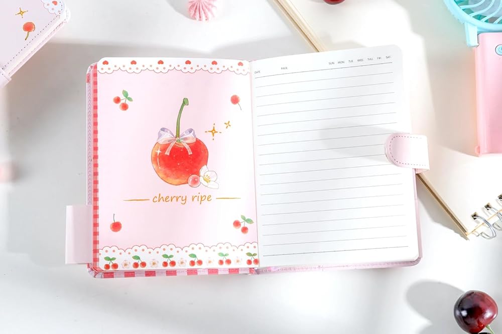 🍒 Compact Size: Measuring at 4.8 x 6.6 inches, this notebook is the perfect size to carry with you wherever you go. Slip it into your bag, backpack, or purse and be ready to capture inspiration on the fly. 🍒 Kawaii Cherry Design: The enchanting cherry blossom cover adds a touch of cuteness to your everyday note-taking. Embrace the Kawaii aesthetic and make a statement with this delightful notebook. 🍒 Colored Pages: Immerse yourself in a world of color! Each page of this notebook comes in a variety of pastel hues, providing a visually pleasing backdrop for your writing, drawing, or planning. Let your ideas come to life on pages that reflect your vibrant personality. 🍒 Versatile Use: Whether you're a student, artist, or someone who simply loves to jot down thoughts, this notebook is designed to meet your diverse needs. Use it for note-taking, sketching, journaling, or planning your day. 🍒 Quality Construction: The notebook is crafted with care, featuring durable binding and quality paper that resists bleed-through from ink or markers. It's designed to withstand the rigors of daily use, ensuring your thoughts and creations are preserved for the long term.