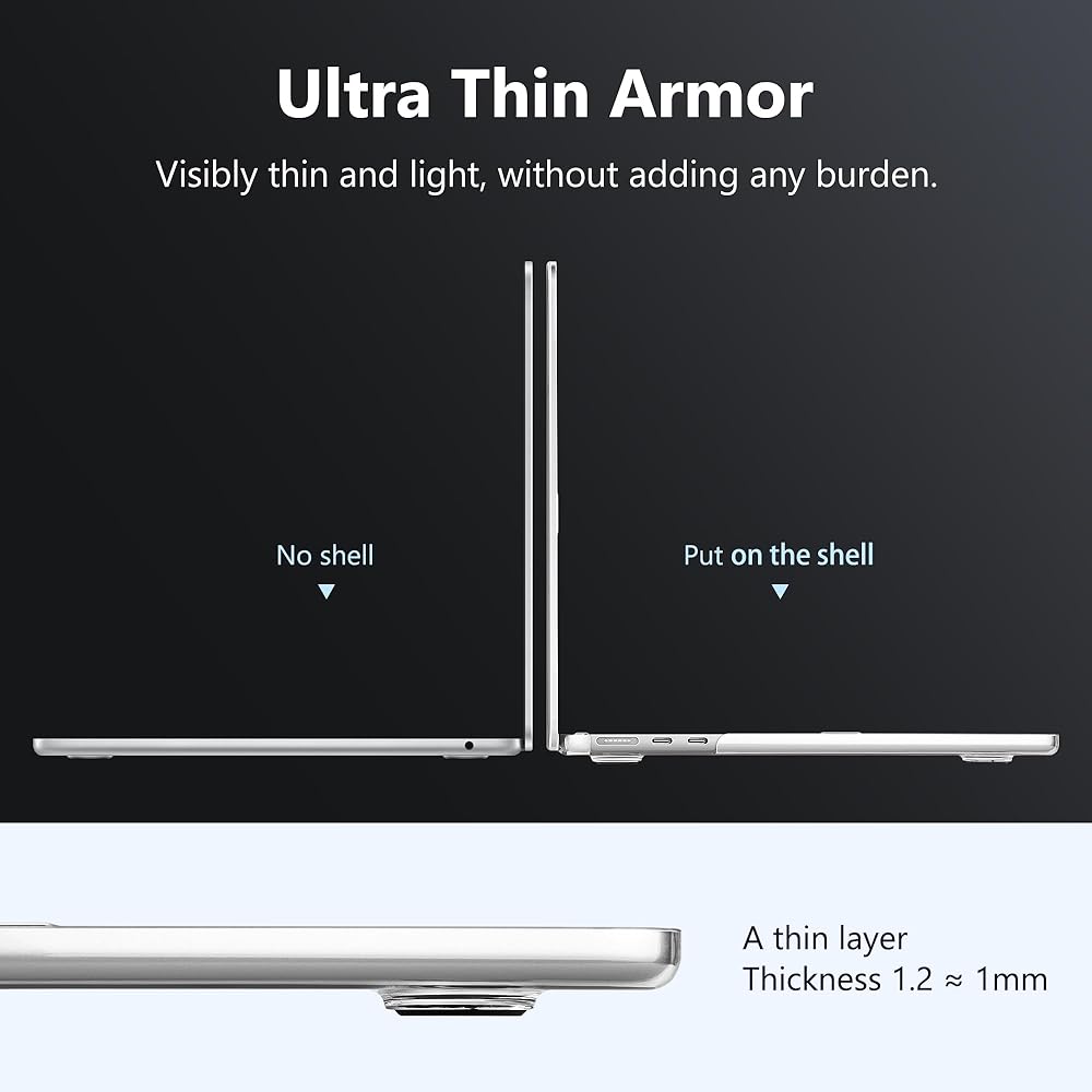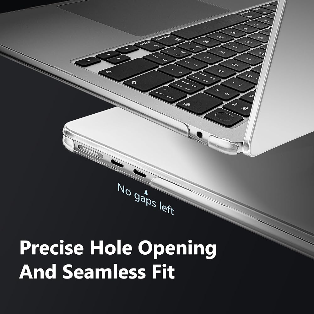 M4/ M3/ M2 Macbook Air 13.6 Inch case: this case is molded according to the original Macbook using micro 3D cutting tech. It fits snugly like a second skin retaining its slim design and ensuring 100% pure transparency, allowing your MacBook to shine brilliantly in its original colors, All-around Protection, Long-lasting new, easy access to all ports, and smooth opening and closing