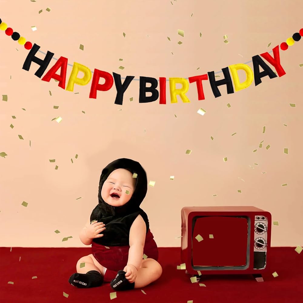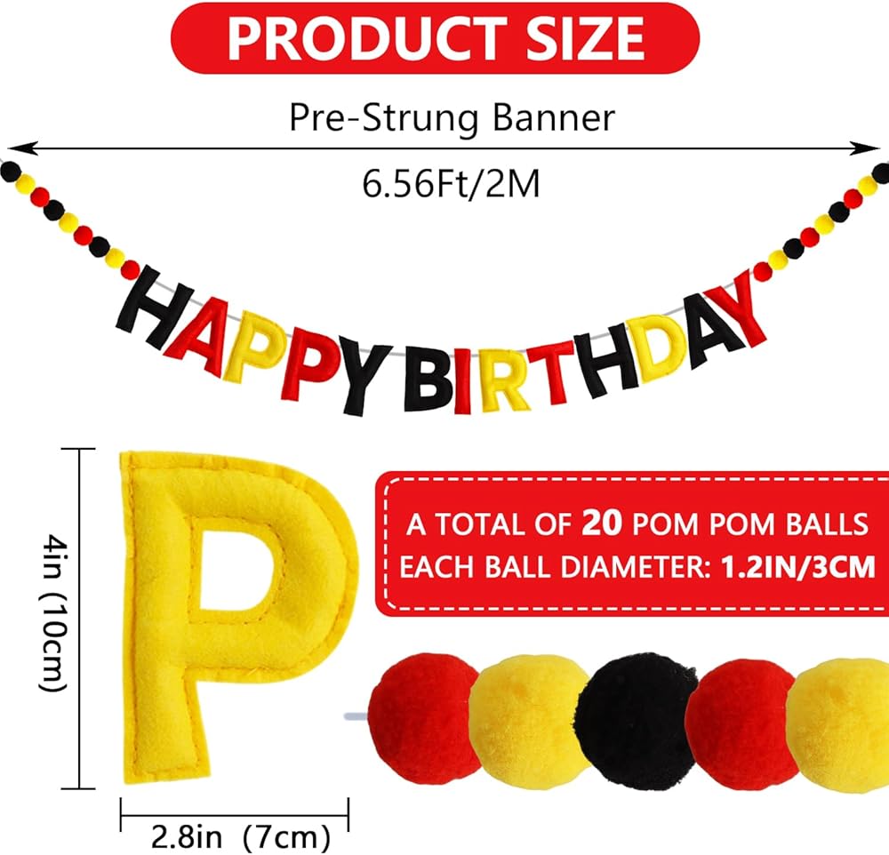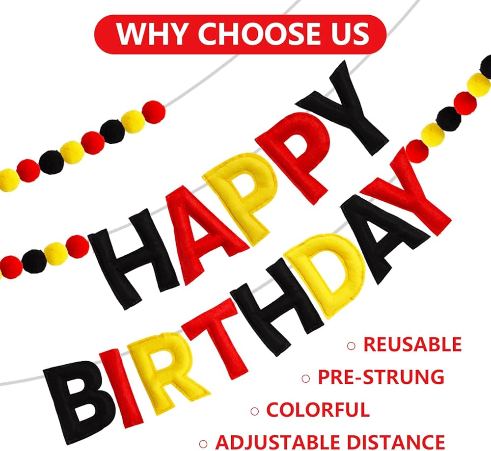 SOFT & REUSABLE MATERIAL : Our "Happy Birthday" Garland consists of "HAPPY BIRTHDAY"letters and 20 pcs 1.2" pom-poms. The letters are made of high-quality felt fabric and cotton. 20 pcs 1.2" pom-poms are also made of high-quality cotton with bright colors. They are very skin friendly and sturdy so that the garland can be reused multiple times.