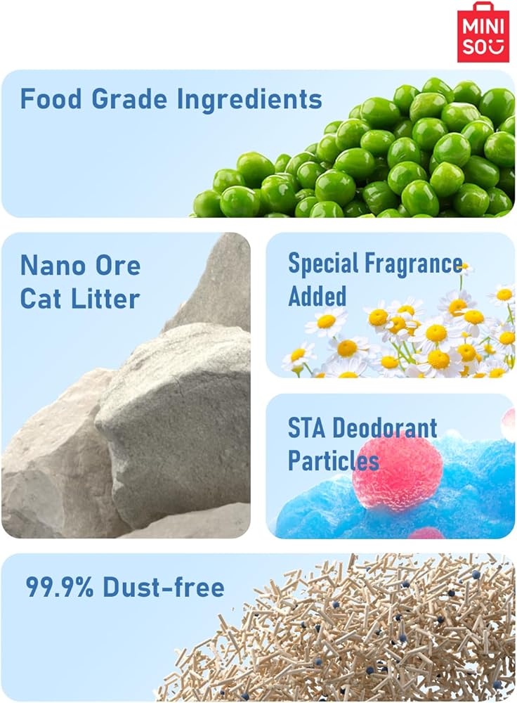【Vacuum Packing for Better Storage】All Miniso cat litter is vacuum package in regular shape and small size (7.9 lbs per bag), easy to store and carry, and no need to worry about moisture.