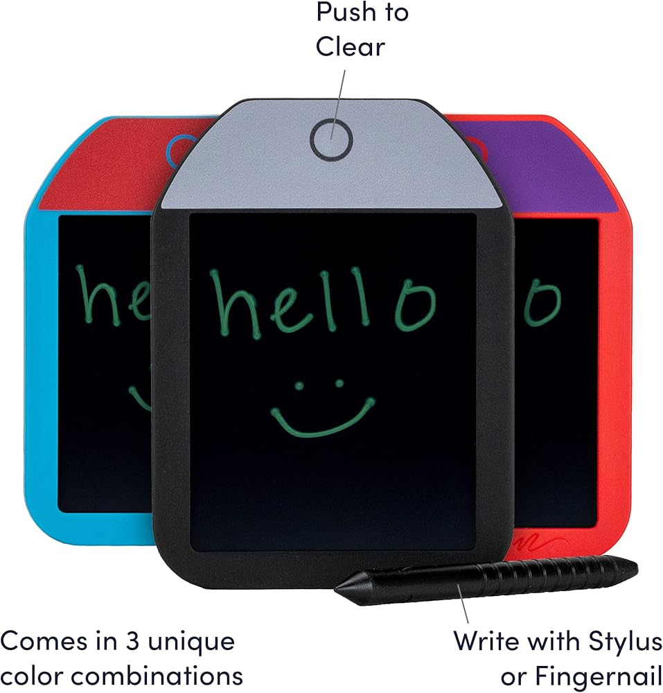 Instant Erase: Push the button on top of the Mini writing tablet to activate Boogie Board's unique Quick Clear technology and watch the board instantly clear itself. No need for special erasers or paper towels.