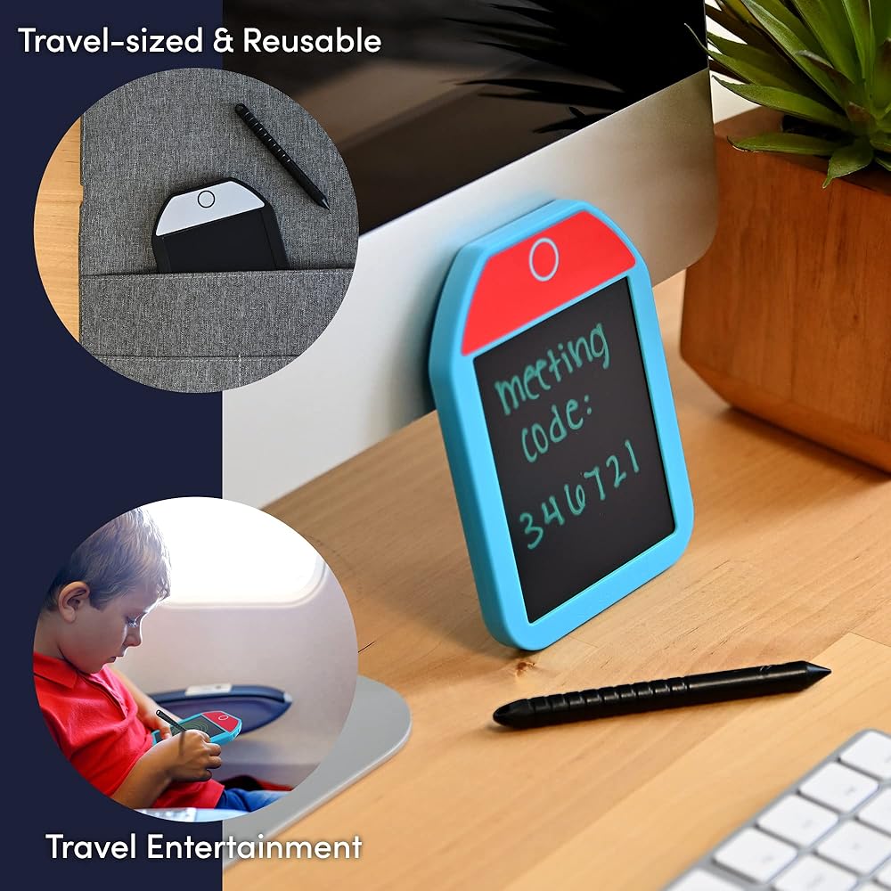 Boogie Board Basics Mini is a travel size reusable writing pad that's perfect for doodling or jotting down quick notes anywhere.