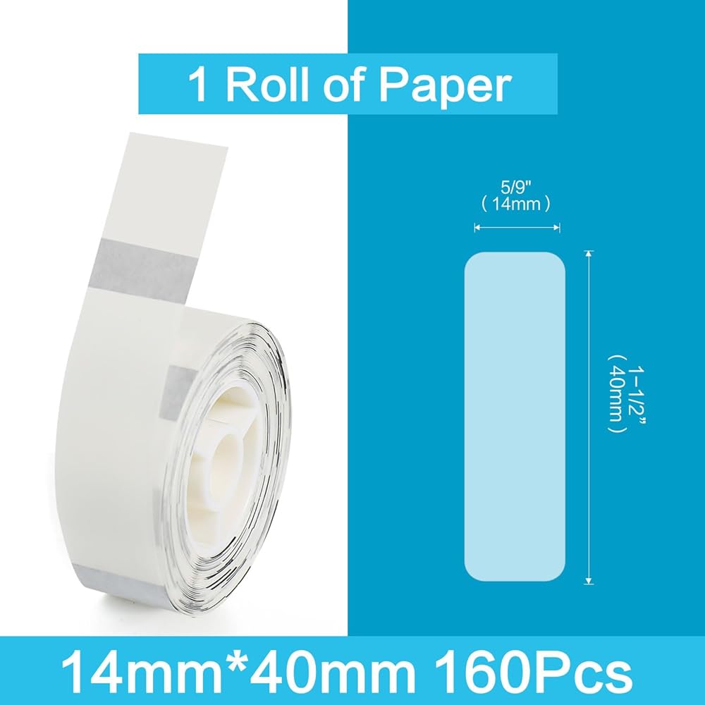 【LABEL SIZE】White Label Size:5/8”*2” (15*50mm) 130 Labels/Roll;Clear Label Size:5/9”*1-1/2 (14*40mm) 160 Labels/Roll; Luminous Label Size: 13*35mm 90 Labels/Roll. Thermal printing- no ink or toner. No sticky residue when removed. Easy-to-peel split backing for simple application. This All-Purpose Labels are suitable for D11/D110/D101 Thermal Label Printer New Version(sold separately in our store),Compatible with NIIMBOT D11/D110/D101 label maker printers.