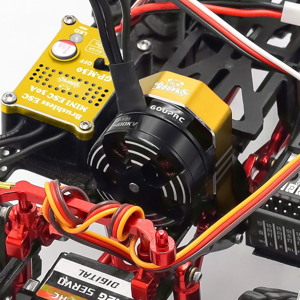 GOUPRC 2204 2400KV Brushless Outrunner Motor with Transmission & 30A Brushless Mini Esc for SCX24 Axial 1/24 Remote Control Car Truck Crawler Black & Gold