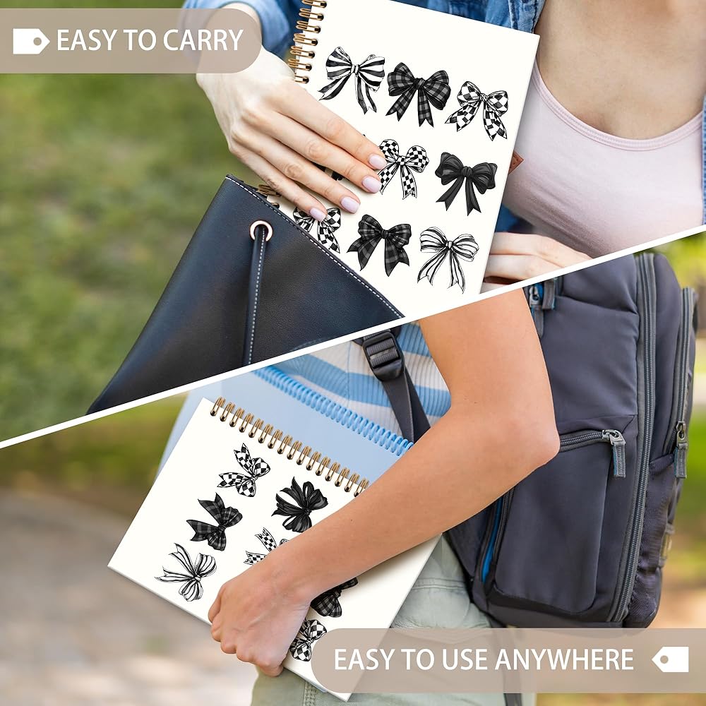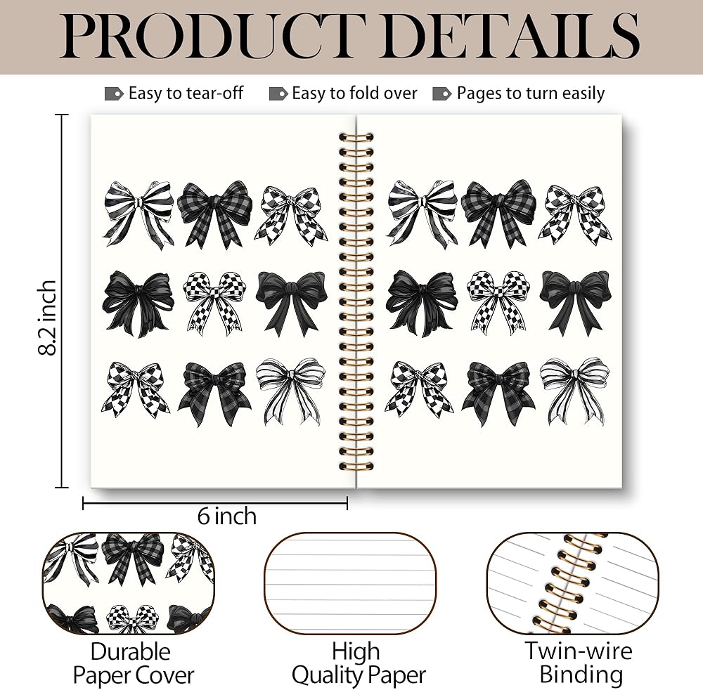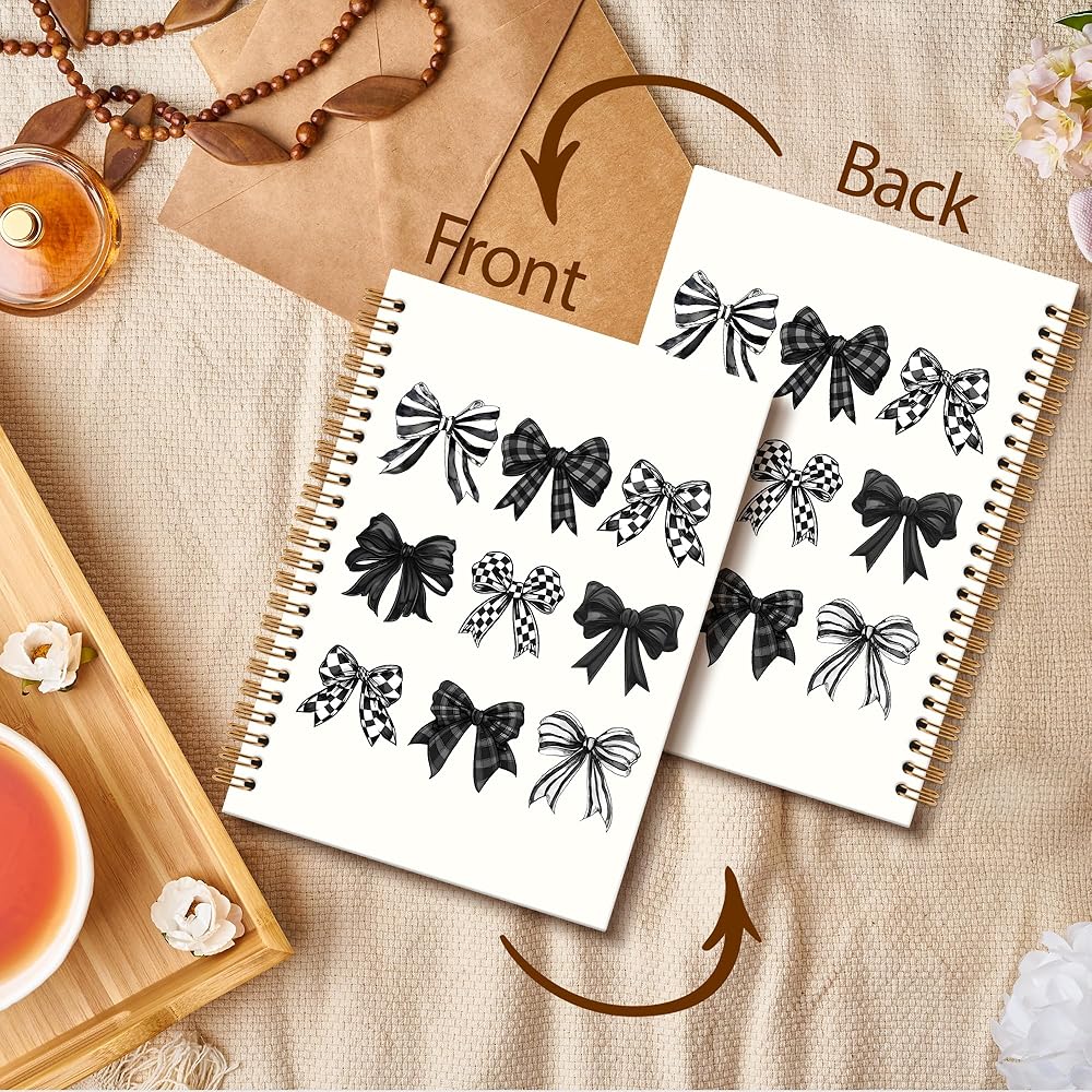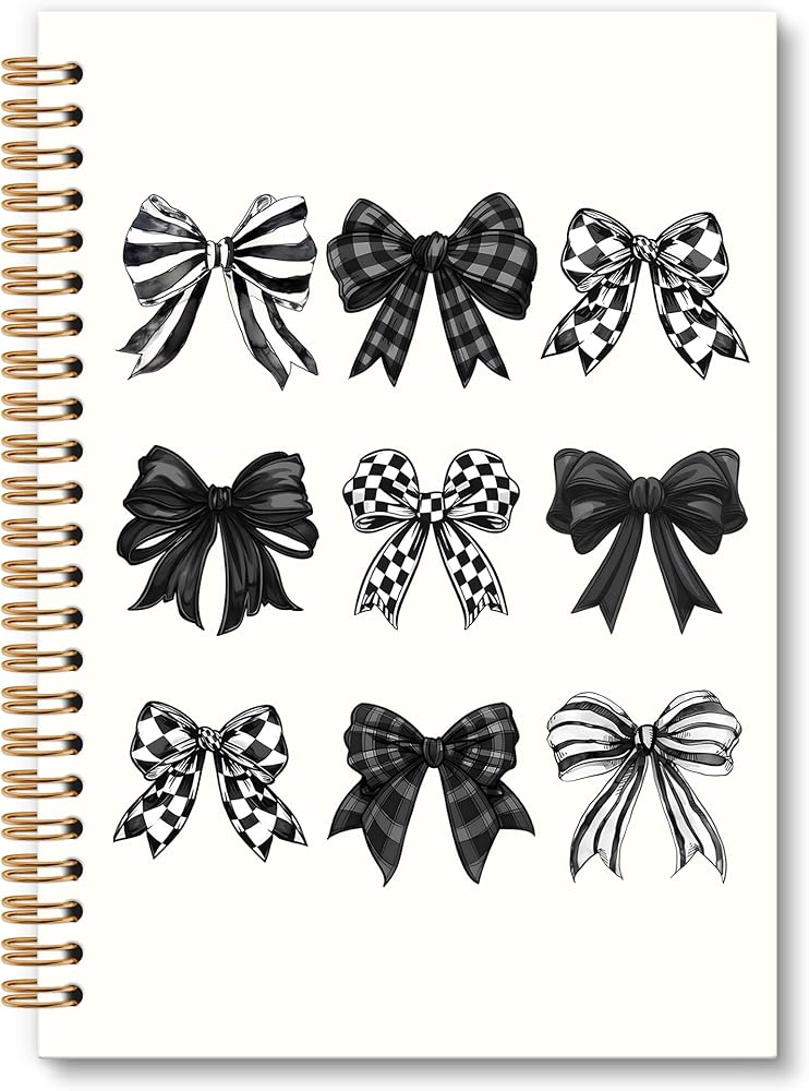 Black Bow Notebook Journal - Black and White Checkered Bow Spiral Notebook, Preppy Girly Notebooks Gifts for Women Girls, Coquette Checkered Preppy Girly School Office Supplies, 6x8.2In