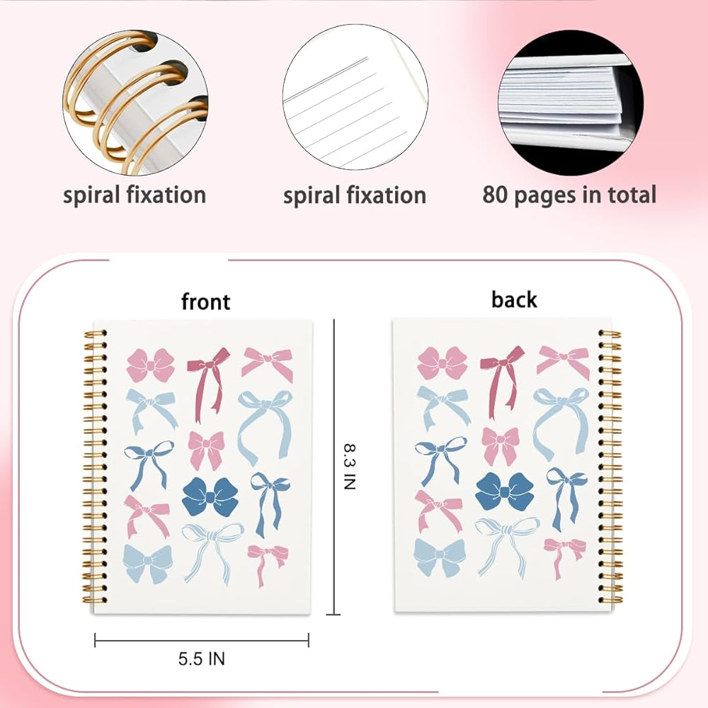 Pink Bow Coquette Journal Notebook, Preppy Pink Aesthetic Notebook Journal for Women, Pink Office Supplies, Cute Notebook, 5.5x8.3 Inch