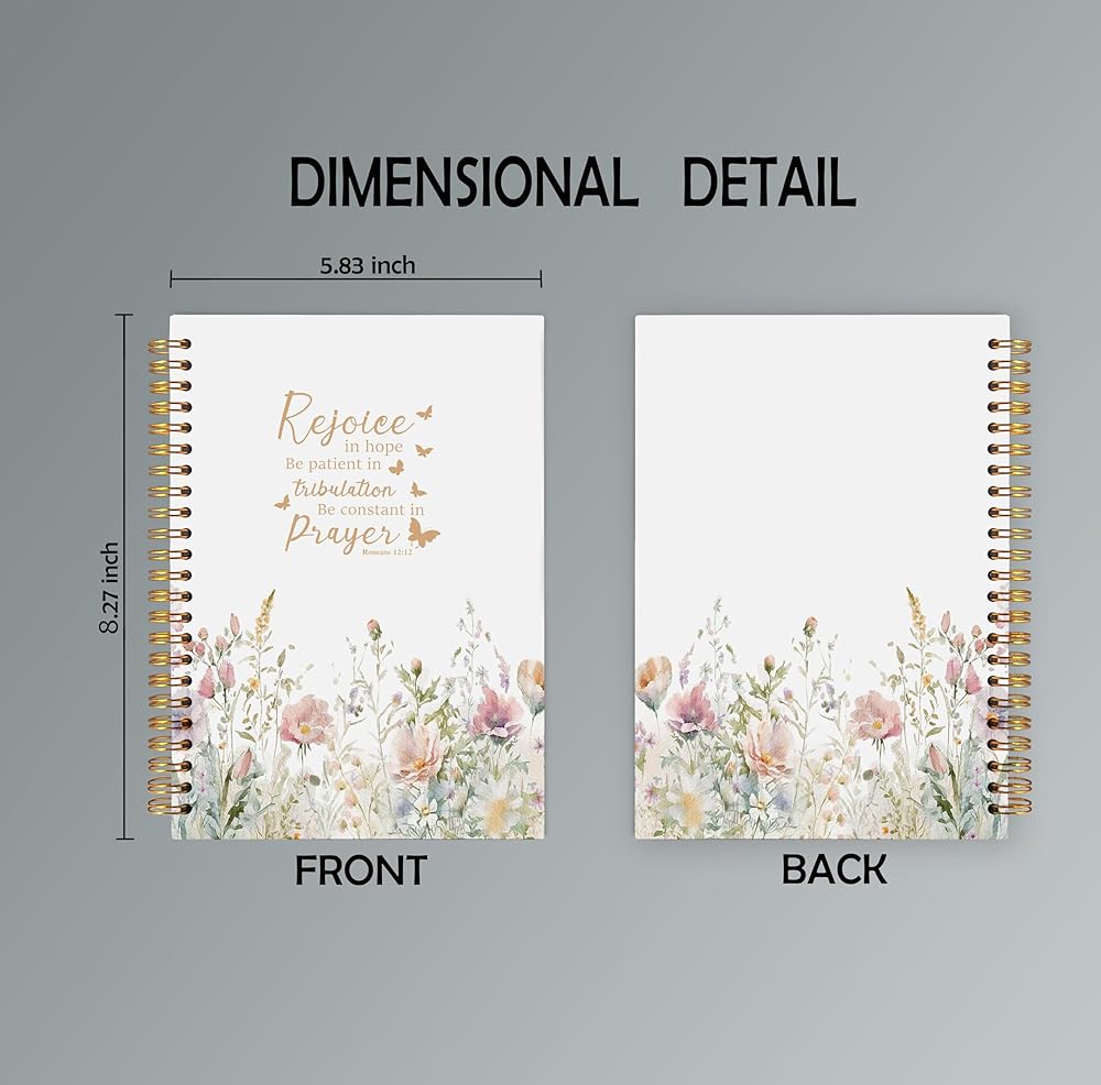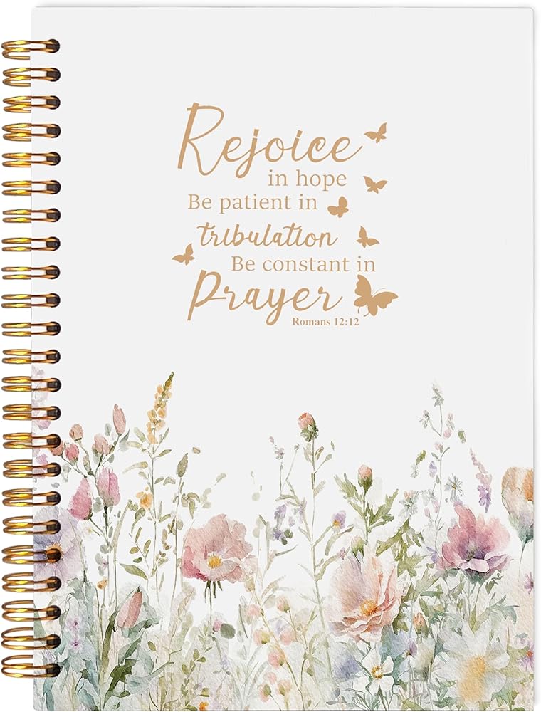 Floral Christian Notebooks for Women, Romans 12:12 Bible Journal for Women, Prayer Journal for Woman, Church Notes Notebook, Scripture Hardcover Spiral Notebook 5.5x8.3 Inch