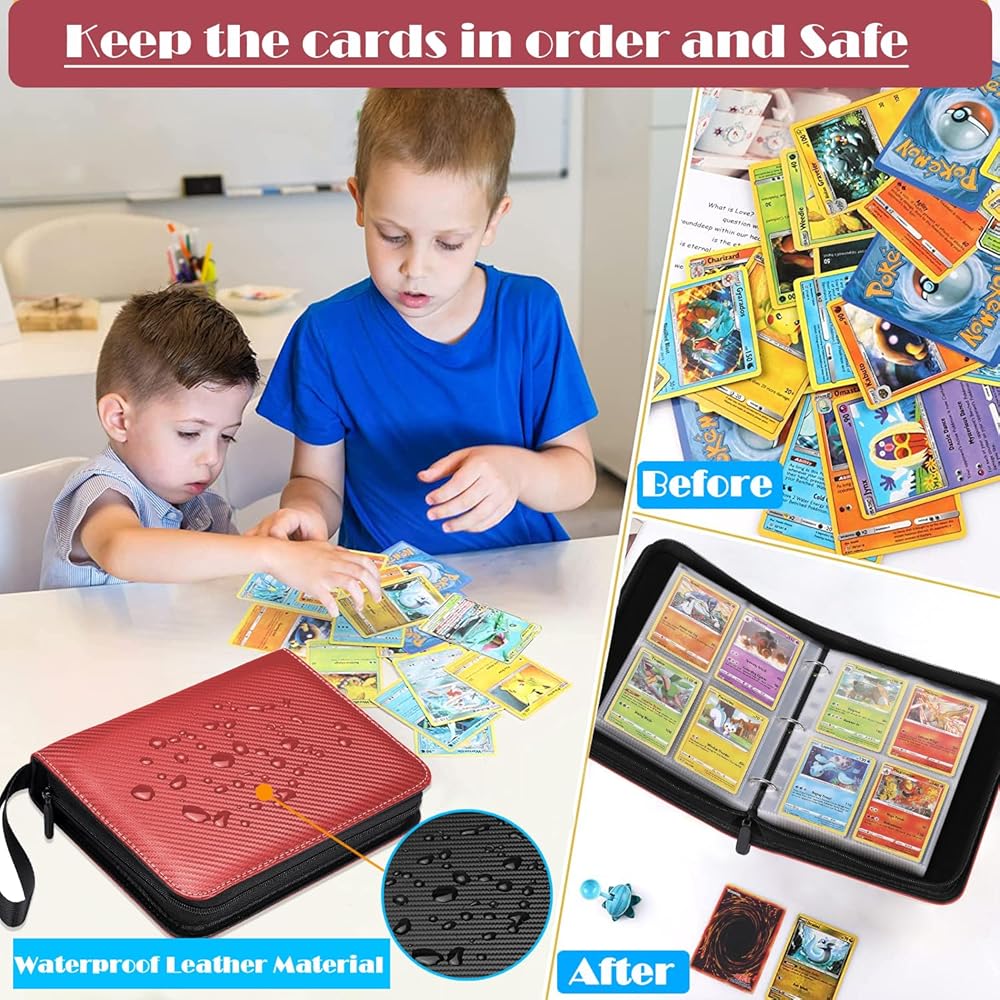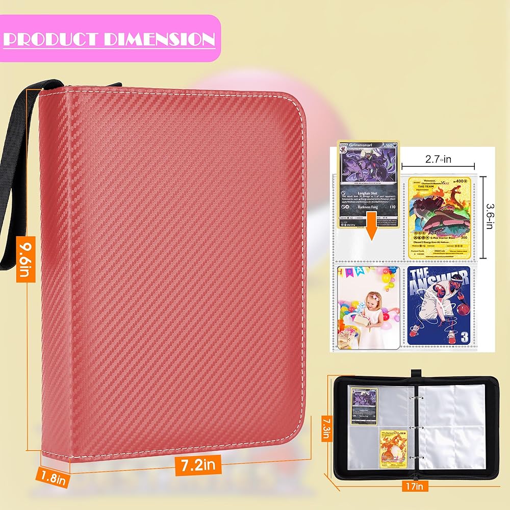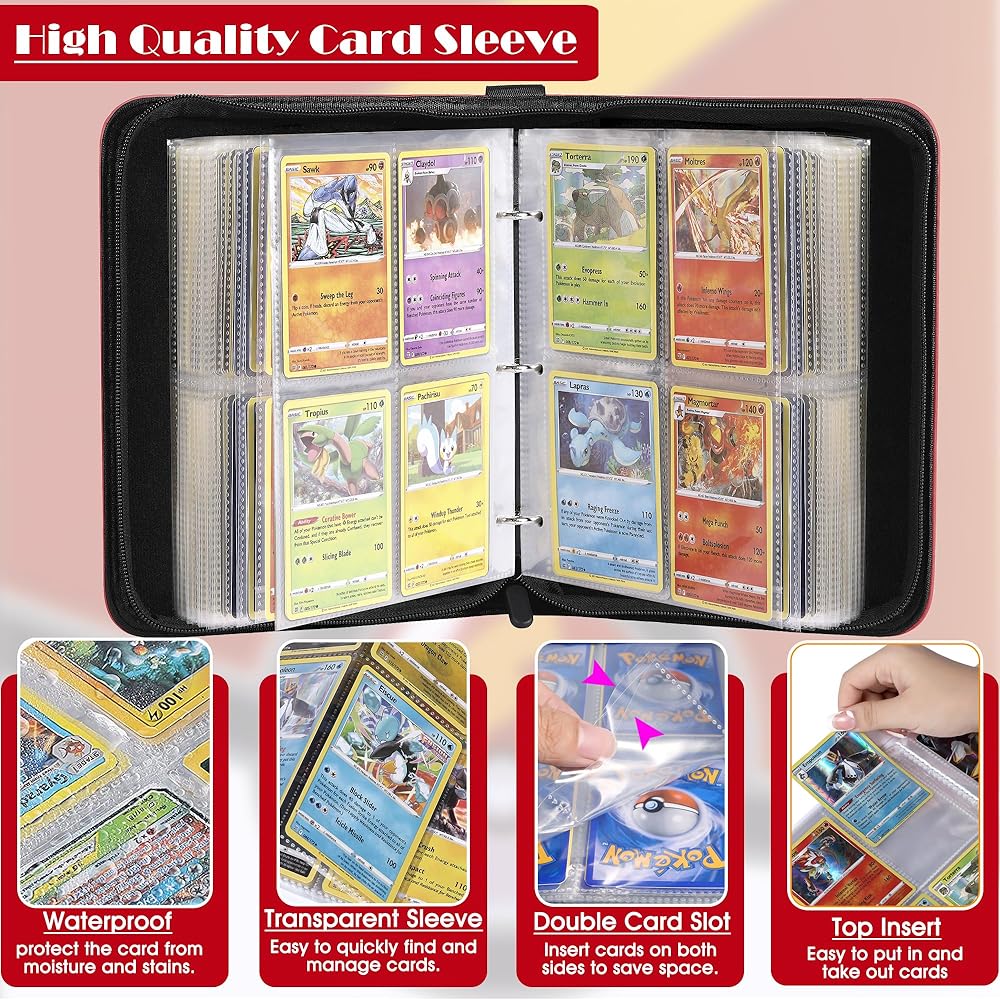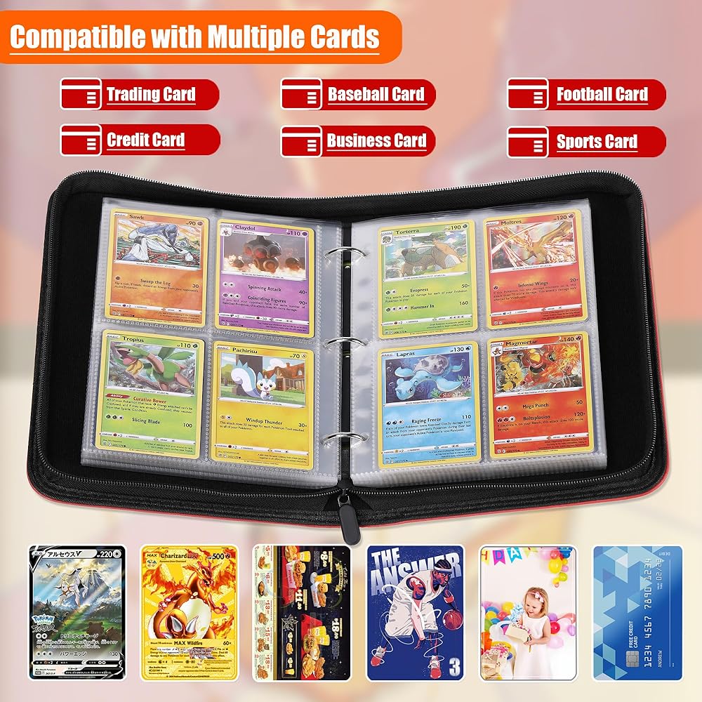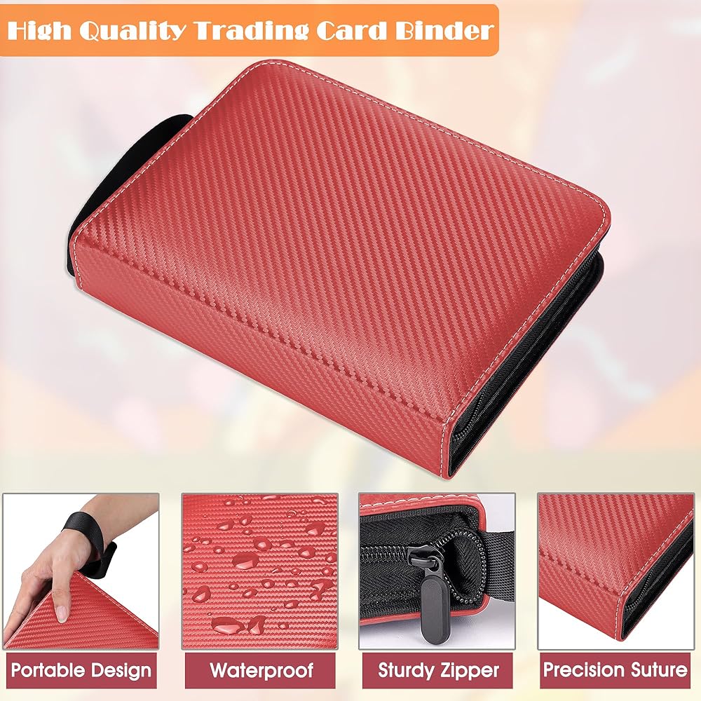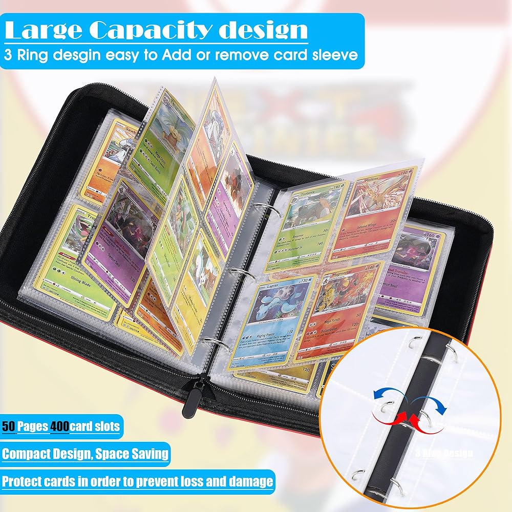 • 【Excellent Humanized Design】 ① The trading card binder closed zipper design ensures that the inside pages or cards will not fall or be lost; ② The transparent card page allows you to turn the page without taking out the card to view and appreciate all the cards; ③ The trading card holder extra wrist strap design makes it easy for children and adults to carry; ④trading card holder 3-ring design, easy to open and close the binder, convenient for you to add or delete card sheet at will.