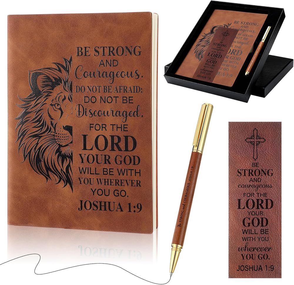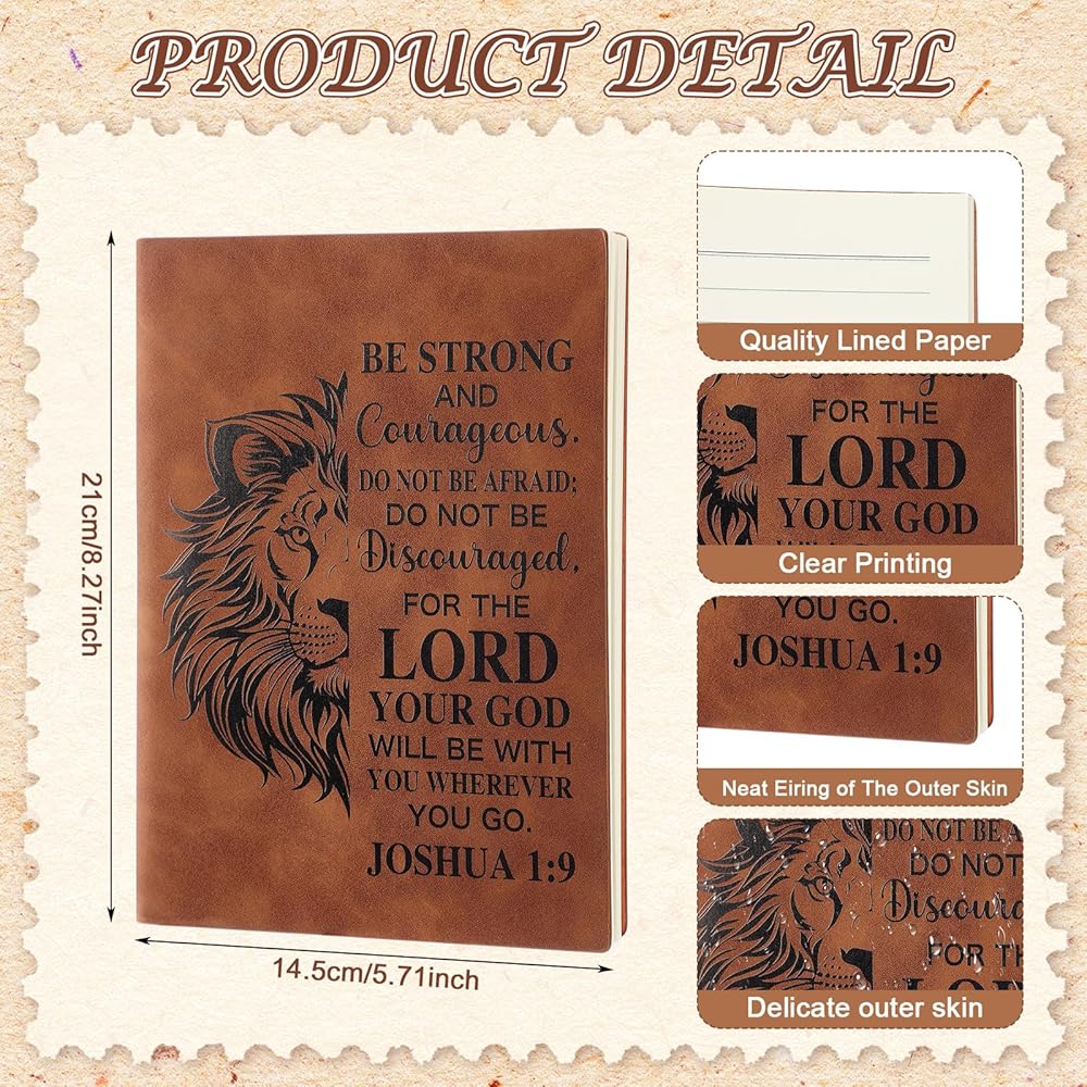 The lion christian notebook journal features a high-quality leather cover with an lion design, symbolizing strength and faith. The durable leather not only provides a luxurious feel but also ensures long-lasting use, making it an ideal companion for daily journaling, prayer notes, or Bible study reflections
