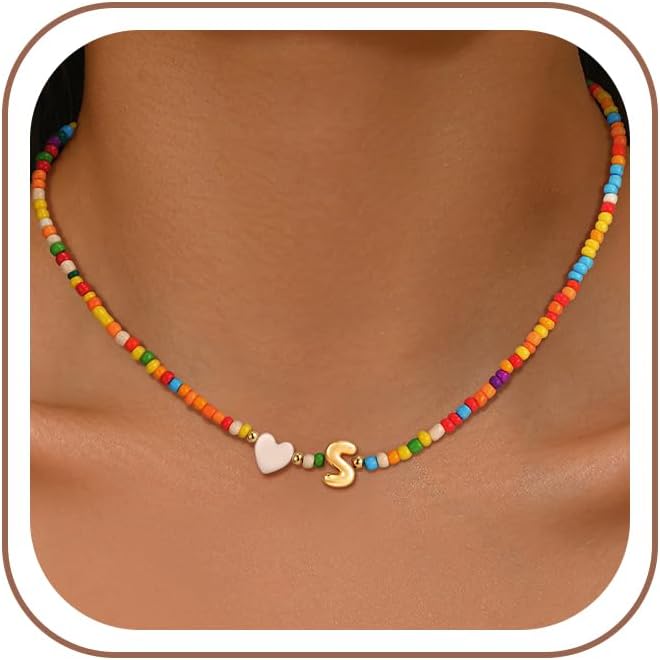 Colorful Bead Initial Necklace: The initial necklace come with colorful bead chain and heart shell, cute and beautiful, you can choose the initial letter which you loved.