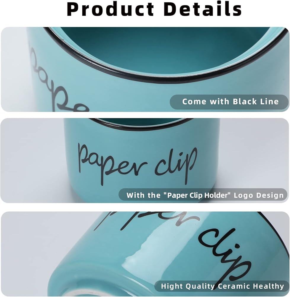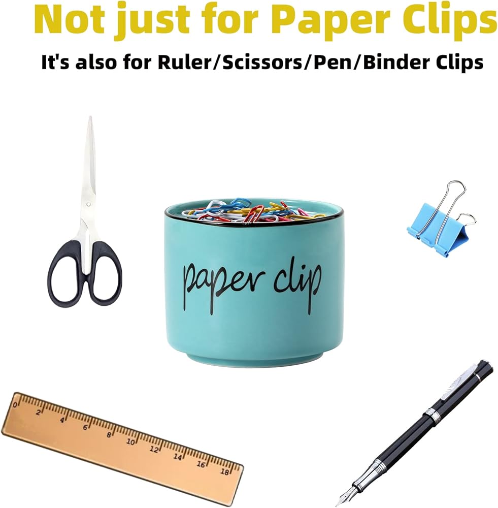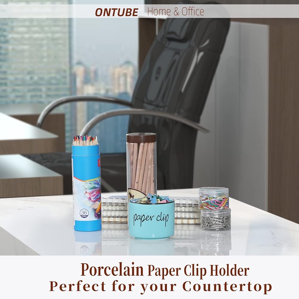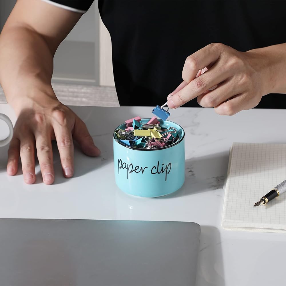 【Ceramic material】-Our paper clip holder is made of ceramic.The surface is smooth and translucent , which is easy to clean.It can be washed in the dishwasher.