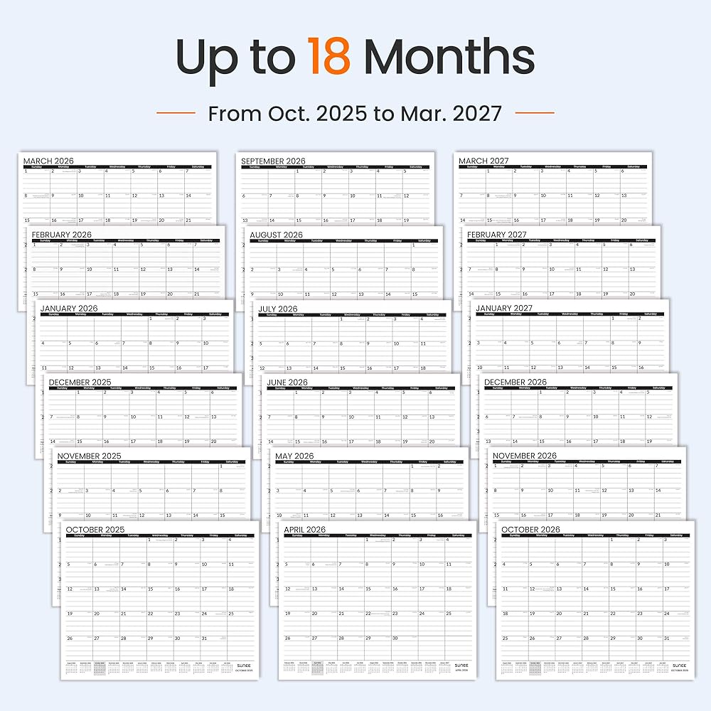 SUNEE Desk Calendar 2026 Large 22x17 from October 2025 to March 2027, Extra Large Desktop Monthly Calendar Pad 18 Months For Teacher or Family, Desk Top, Black