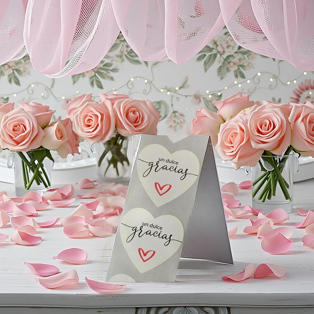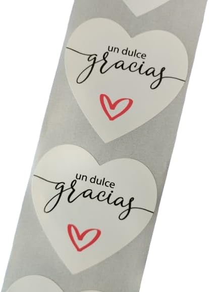 These heart-shaped thank you stickers are perfect for adding a special touch to your gifts and shipments. Made from glossy polypropylene, these 2" labels are printed in two colours with an attractive design. Use them to label wedding or celebration details, mailing or just to express your gratitude in a unique way. Easy to stick and peel, these labels are ideal for multiple uses. Personalize your gifts and make your recipients feel appreciated with these charming Spanish thank you tags.