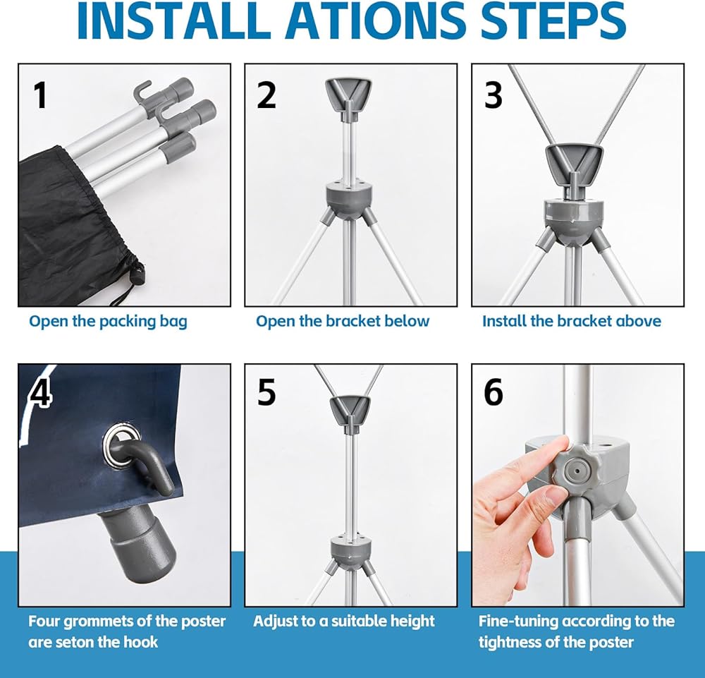 【Adjustable Height】The adjustable carbon fiber rods allow convenient and easy changing your posters, signs or pictures anytime as you like. Easily slide the X-rods into the holes in the edge of your banner then adjust to display of your messages, promotions or offers. What's more, you do not need any tools during assembly.